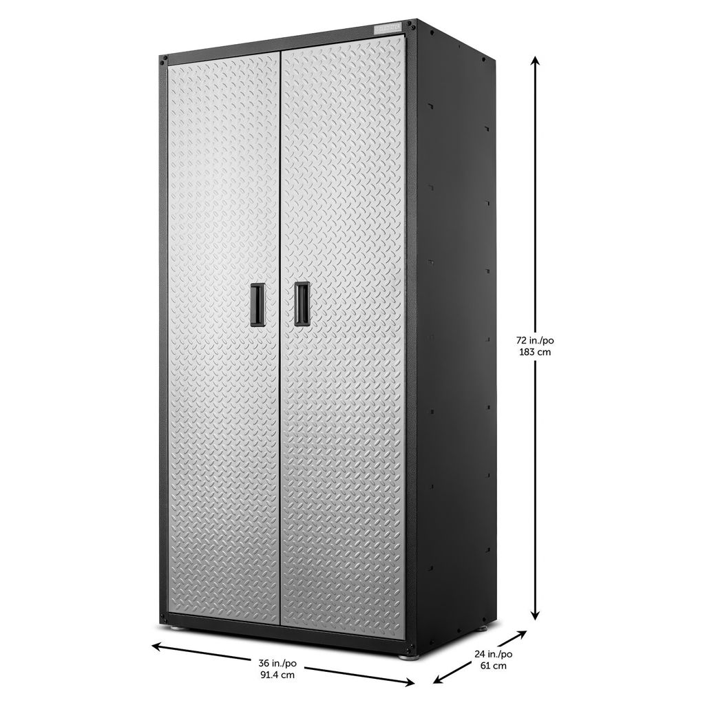 Cette armoire en acier robuste est aussi résistante qu'elle en a l'air et comme de nombreux produits Gladiator®, est couverte par une garantie limitée de 10 ans. Non compatible avec le kit de roulettes.