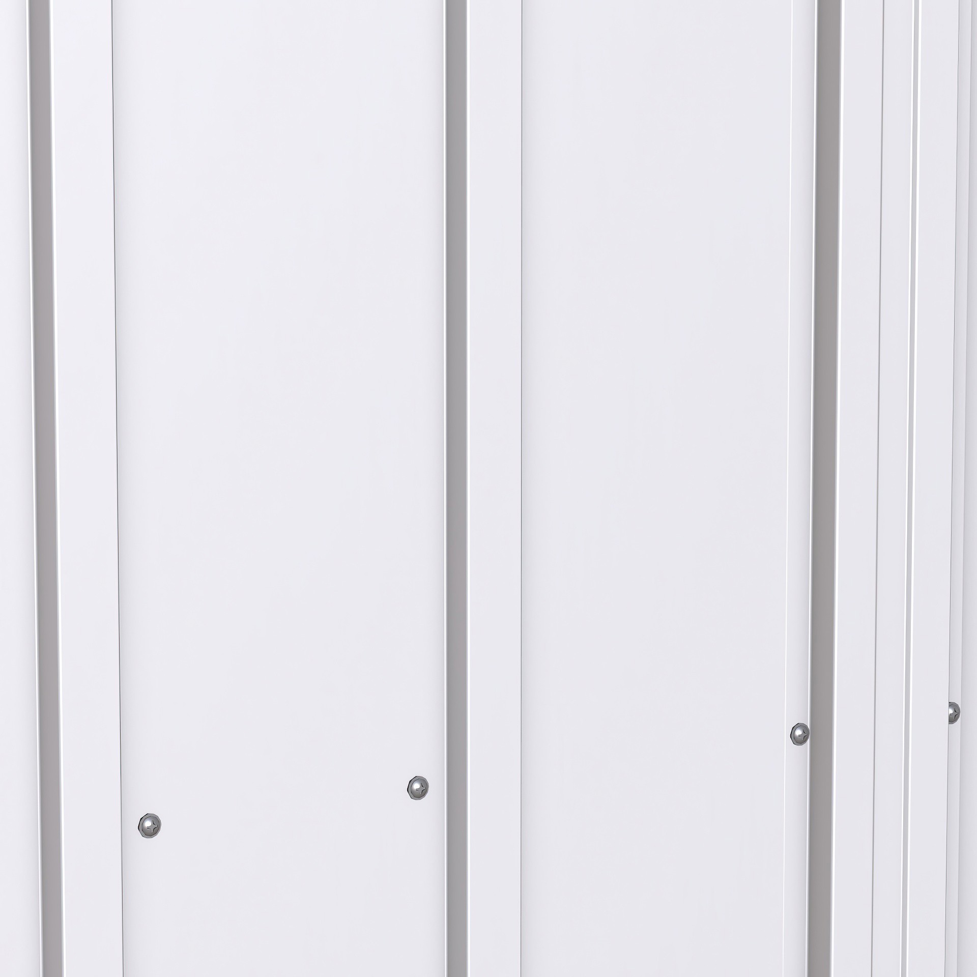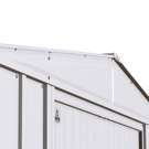 La remise est en acier galvanisé traité pour éviter la rouille et la corrosion. Son toit à pignon bas est conçu pour empêcher l’eau de s’accumuler.
