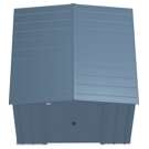 La remise est en acier galvanisé traité pour éviter la rouille et la corrosion. Son toit à pignon bas est conçu pour empêcher l’eau de s’accumuler.