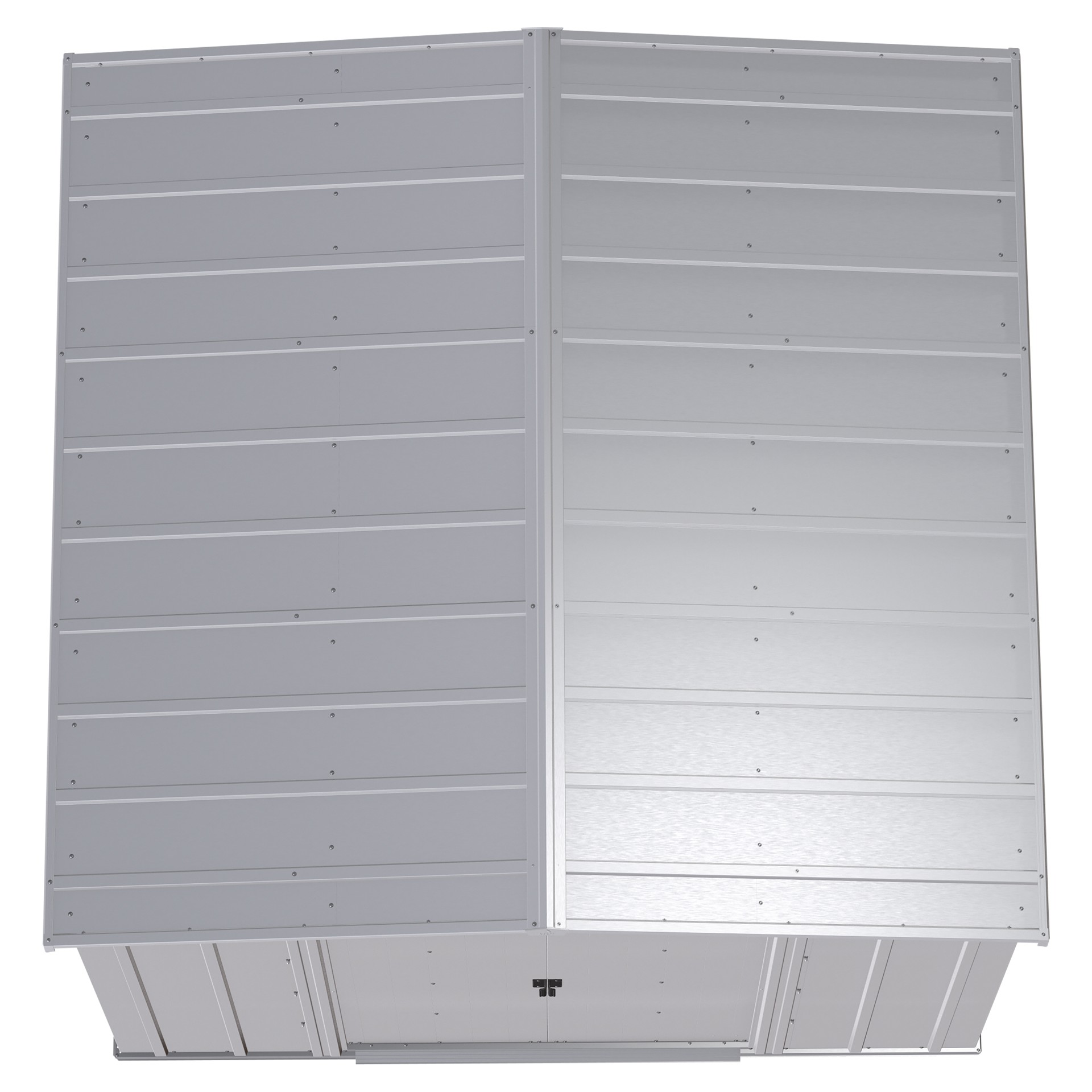 La remise est en acier galvanisé traité pour éviter la rouille et la corrosion. Son toit à pignon bas est conçu pour empêcher l’eau de s’accumuler.