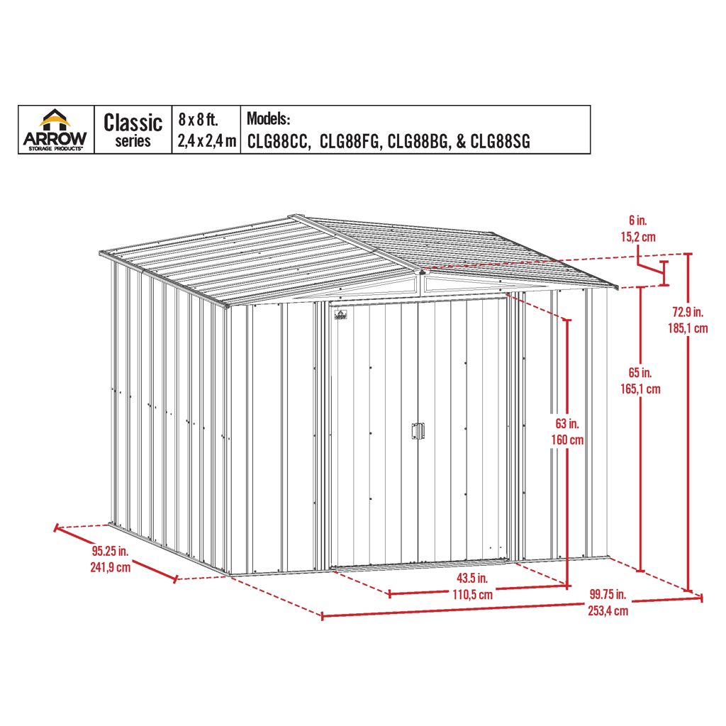 L'Arrow Classic est également une belle unité. Les panneaux muraux verticaux intemporels de la remise sont finis avec une peinture polyester Valspar lisse et résistante qui protège contre les éléments et scelle l'acier contre la rouille et la corrosion.