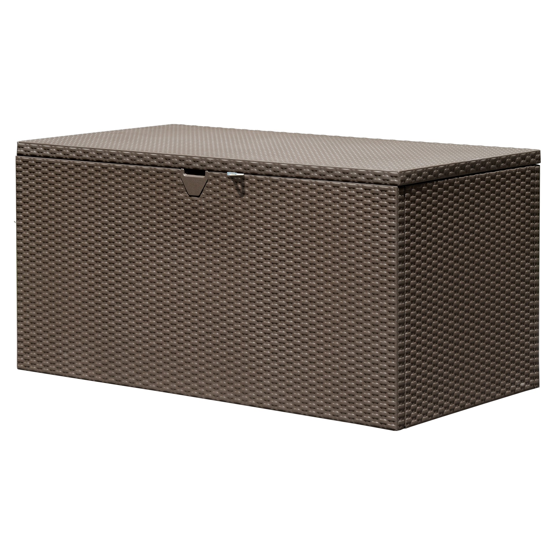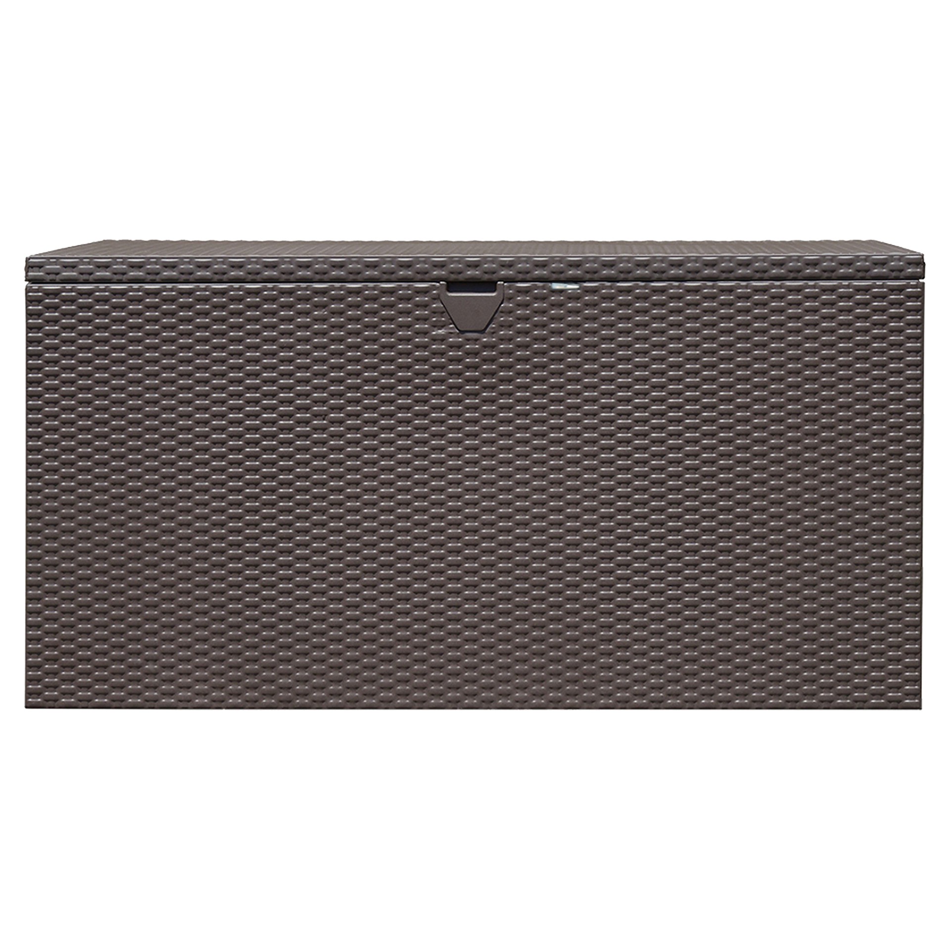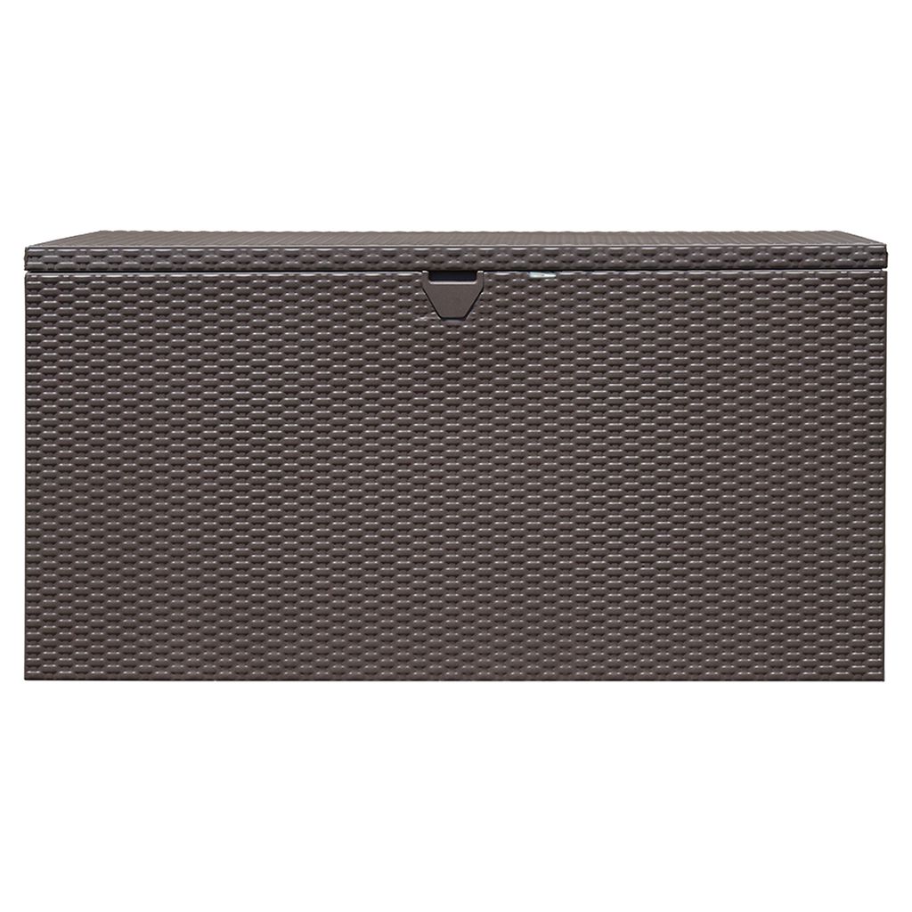Le coffre de terrasse Spacemaker de 4,4 x 2,3 x 2,2 pi est un banc de rangement extérieur attrayant et polyvalent avec un rangement spacieux et pratique.