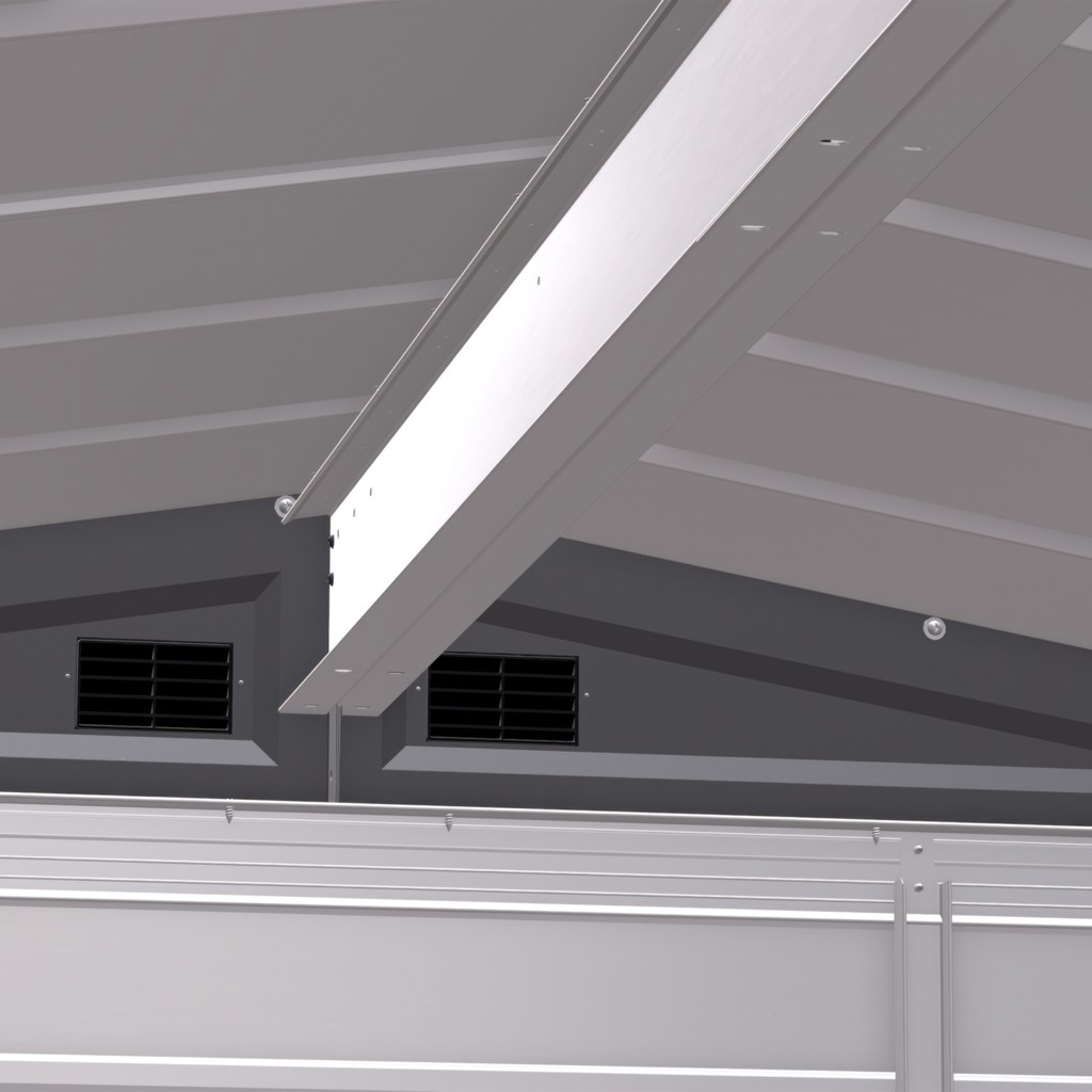 À l'intérieur, les murs de 71 po offrent une hauteur libre supplémentaire, un espace de rangement vertical et un dégagement supplémentaire pour l'entrée. Cela le rend idéal pour ranger les échelles, les râteaux, les scies à perche et tout ce que vous voulez empiler.