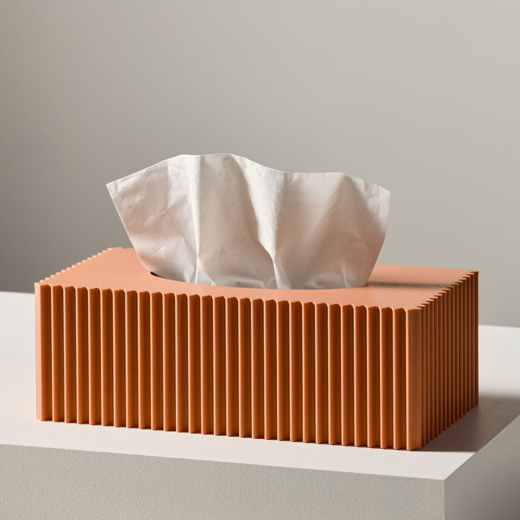 Couvre-boîte à mouchoirs présentant des lignes verticales ondulées et épurées, créant un look moderne et intemporel. C'est le parfait équilibre entre simplicité et fonctionnalité. Celui-ci est fabriqué à partir de matériaux d'origine végétale.