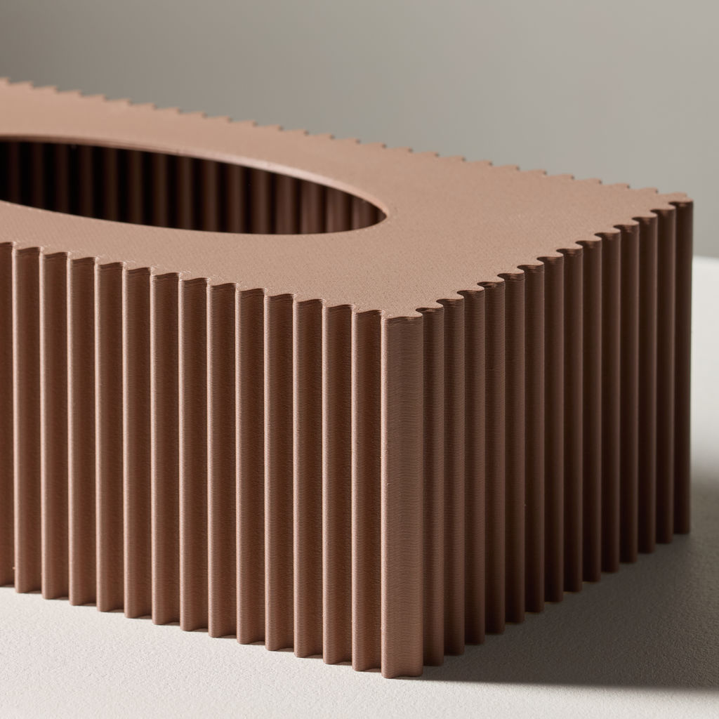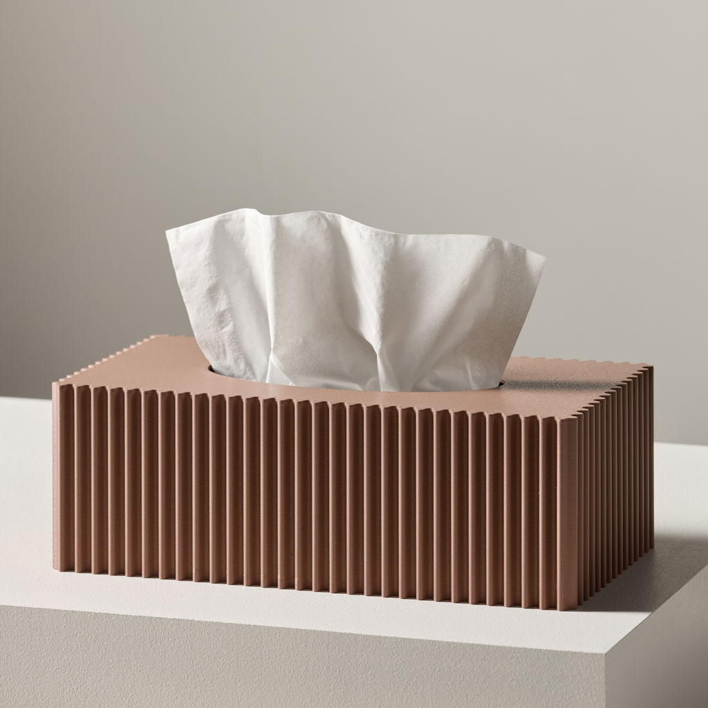Couvre-boîte à mouchoirs présentant des lignes verticales ondulées et épurées, créant un look moderne et intemporel. C'est le parfait équilibre entre simplicité et fonctionnalité. Celui-ci est fabriqué à partir de matériaux d'origine végétale.