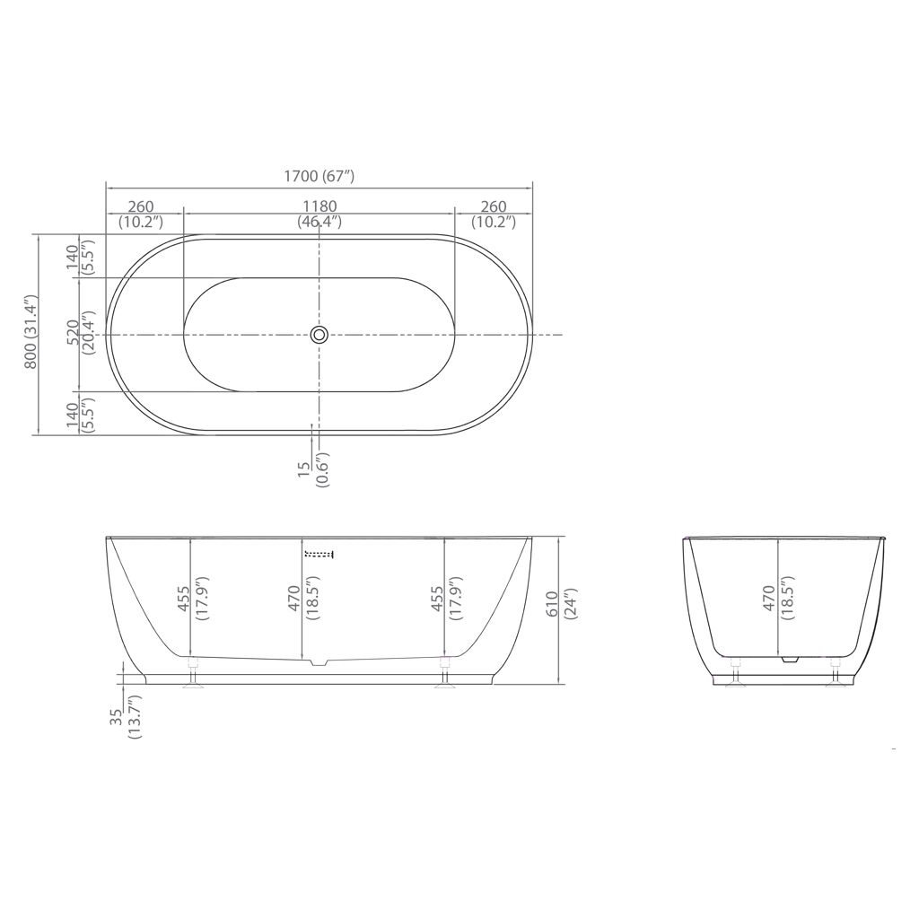 • Type de baignoire : Autoportante