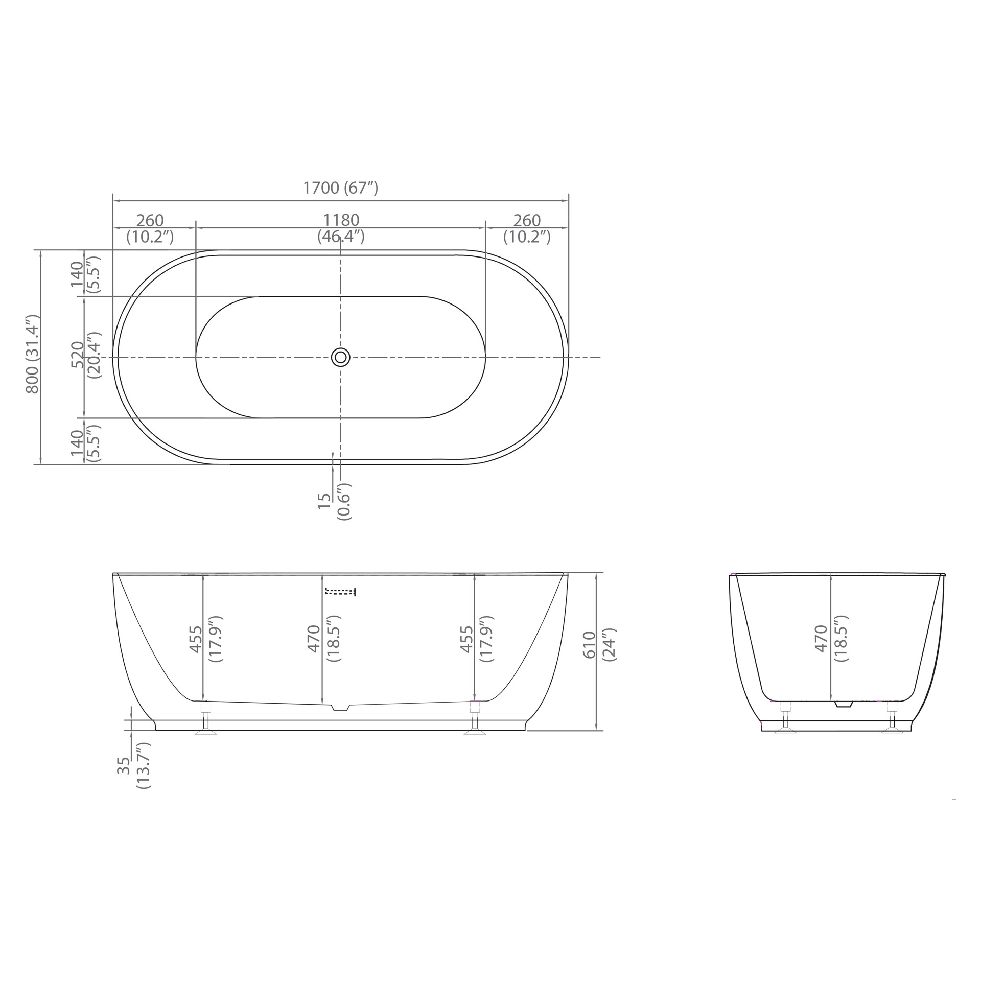 Baignoire classique autoportante - Davis 67 po