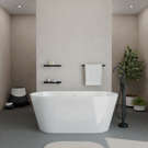 Rehaussez l'esthétique de votre salle de bains avec la baignoire autoportante Calinda et le robinet Linosa, apportant la tranquillité d'esprit et améliorant vos moments de détentes.