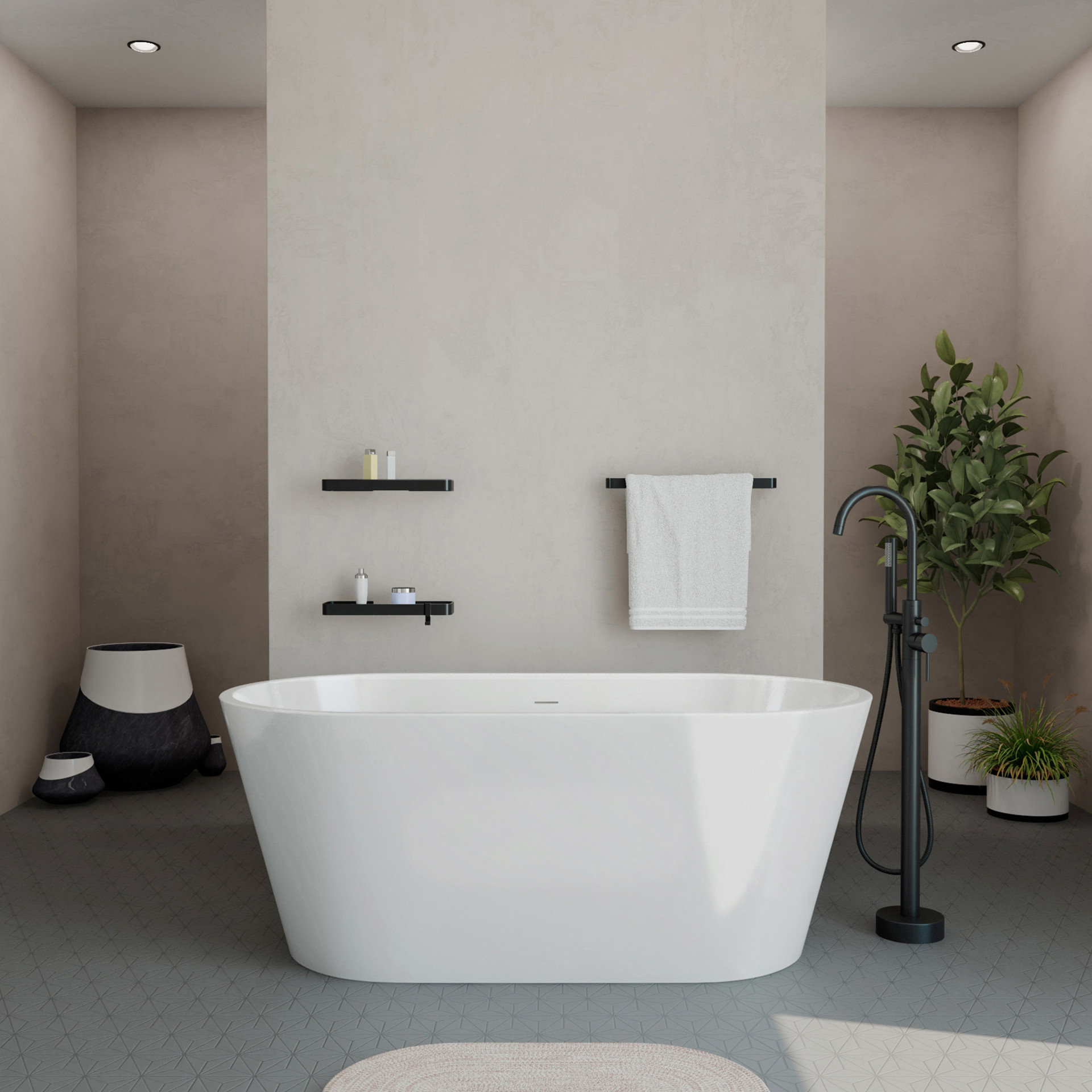 Fabriquée avec de l'acrylique de haute qualité, la baignoire autoportante Calinda présente des bords fins et sans couture ainsi qu'un trop-plein linéaire, maximisant l'espace de bain pour une expérience spacieuse et confortable.