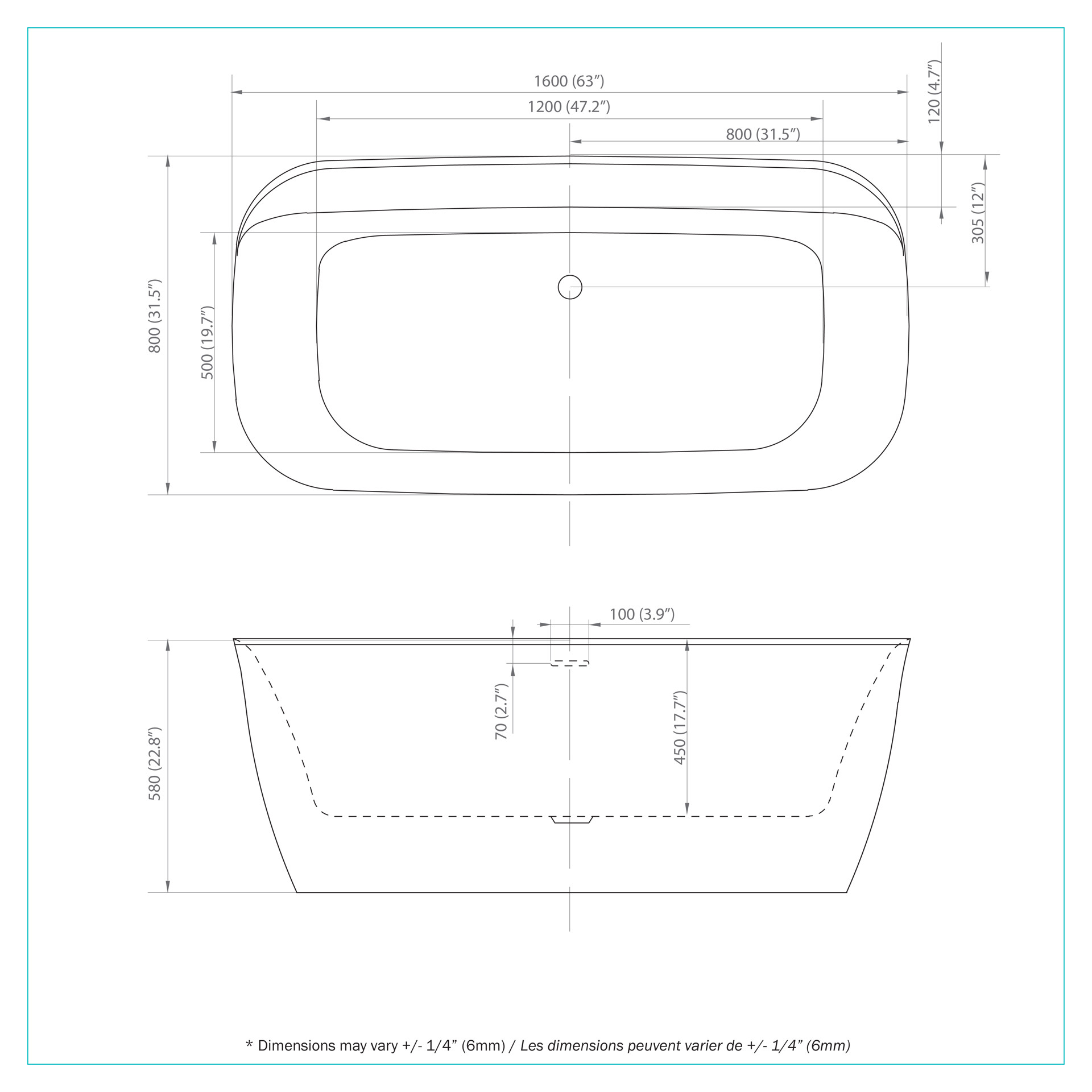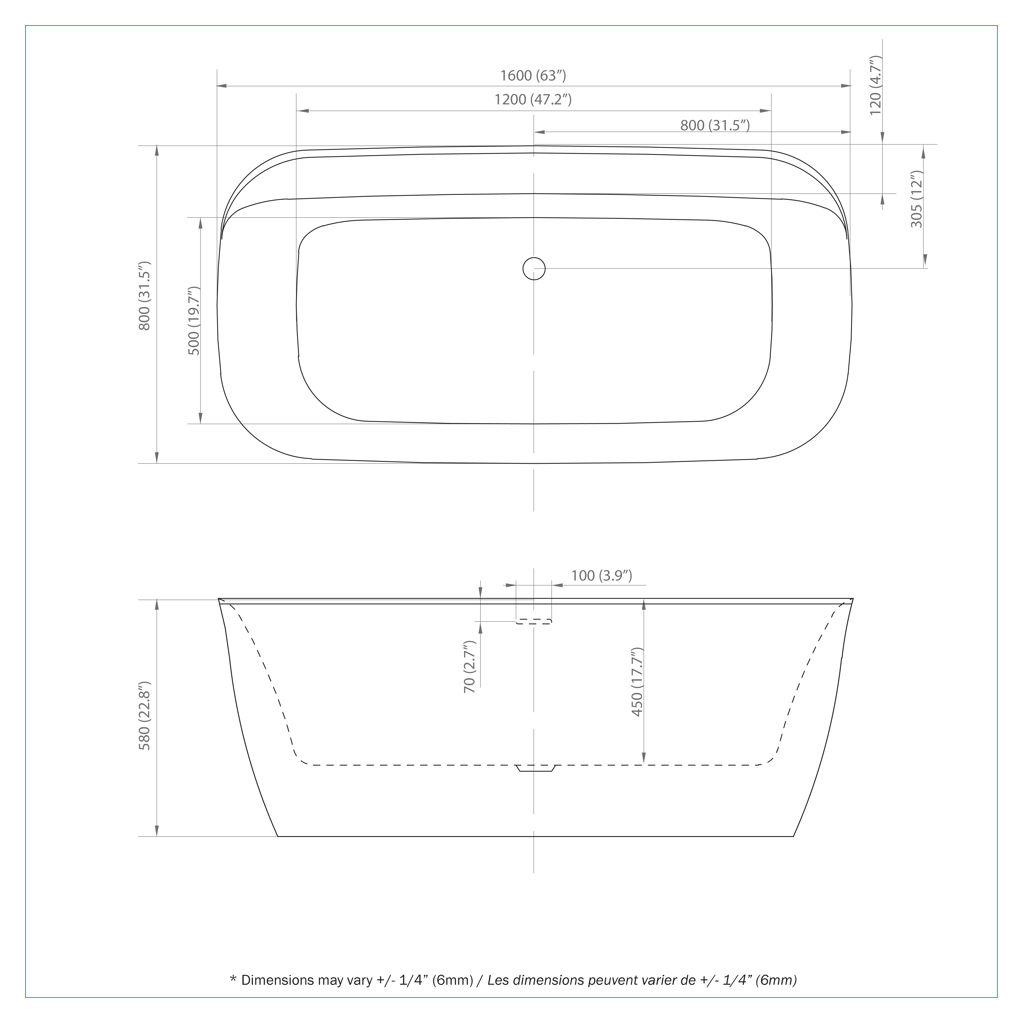 • Longueur du bain : 60 à 64 po