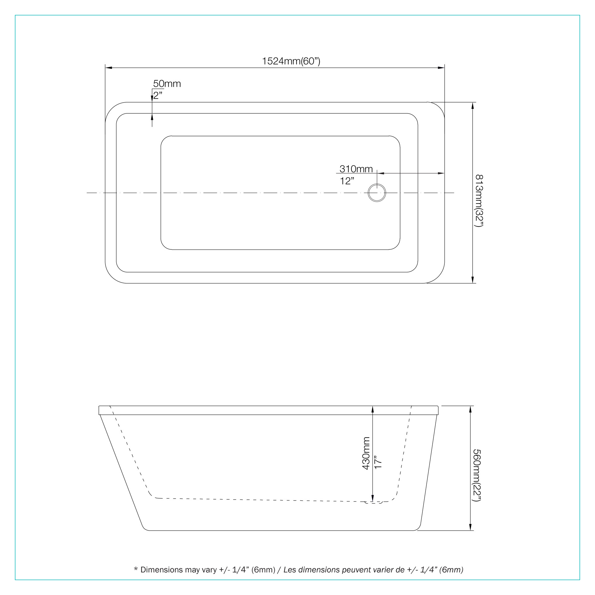 • Longueur du bain : 60 à 64 po