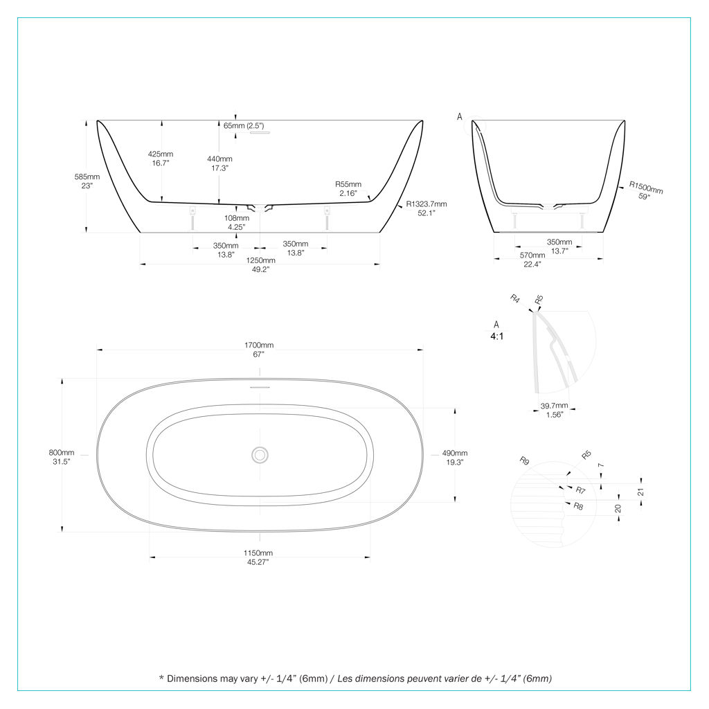 Baignoire autoportante Ohm 67 po Bain A&E BT-7824-67-BLK