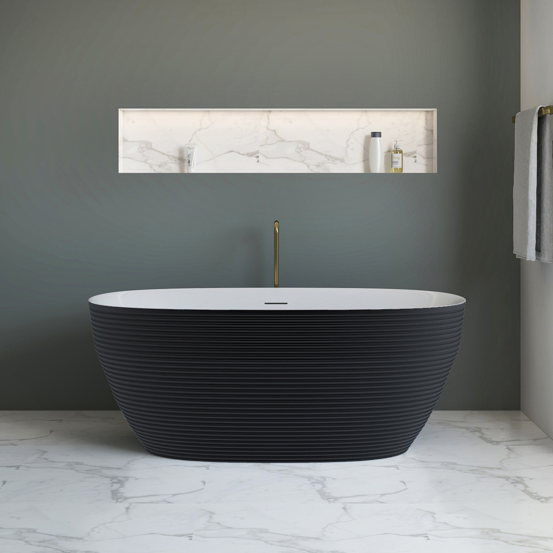 Apportez une élégance intemporelle à votre salle de bain avec cette baignoire en acrylique de 67 pouces au design moderne à rainures horizontales.