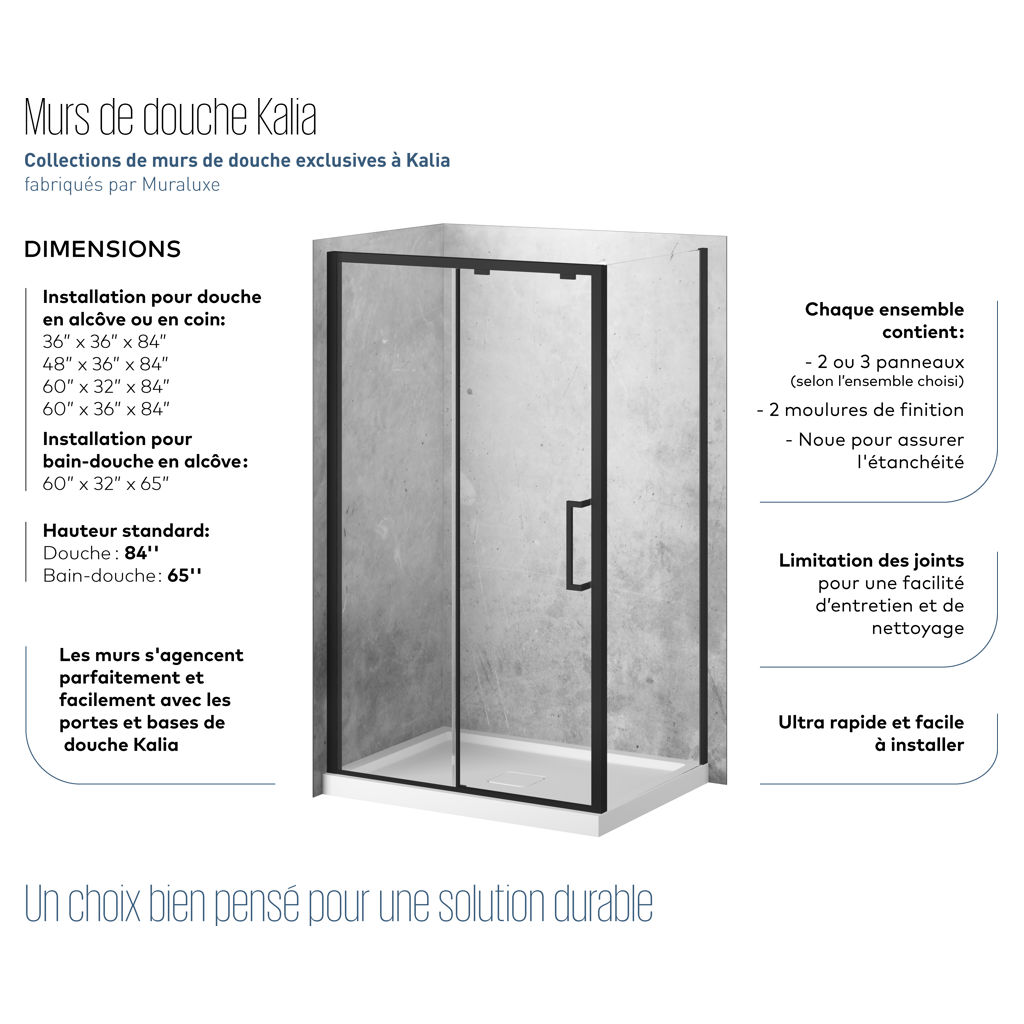 Ensemble de murs de douche 3 panneaux 36x36x36 pour installation en alcôve Kalia WA2009-200-001