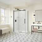 La porte de douche Odyssey confère un look moderne et raffiné à toute salle de bain avec son mouvement fluide et ses finitions élégantes telles qu'or brossé, chrome et le noir mat.