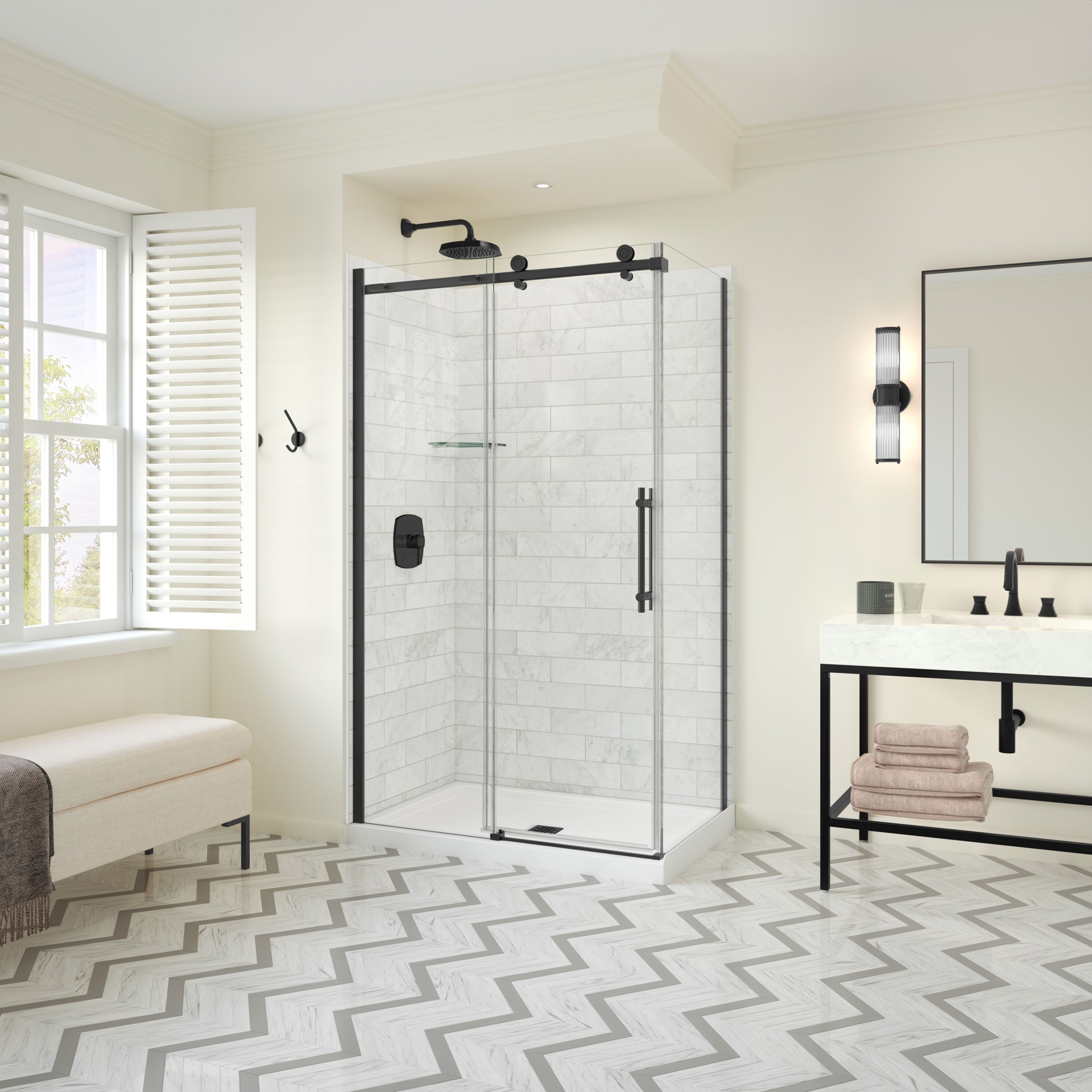 Disponible pour douche de 60 ou 48 pouces, soit en alcôve avec la porte seule, ou bien en installation en coin en ajoutant un panneau de retour.