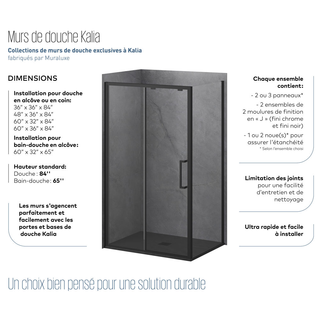 Ensemble de murs de douche 3 panneaux 36x60x36 pour installation en alcôve Kalia WA2011-210-002
