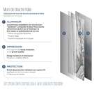• Panneaux fabriqués de feuilles d’aluminium et de polyéthylène de 3 mm d’épaisseur (barrière isolante qui évite la condensation)