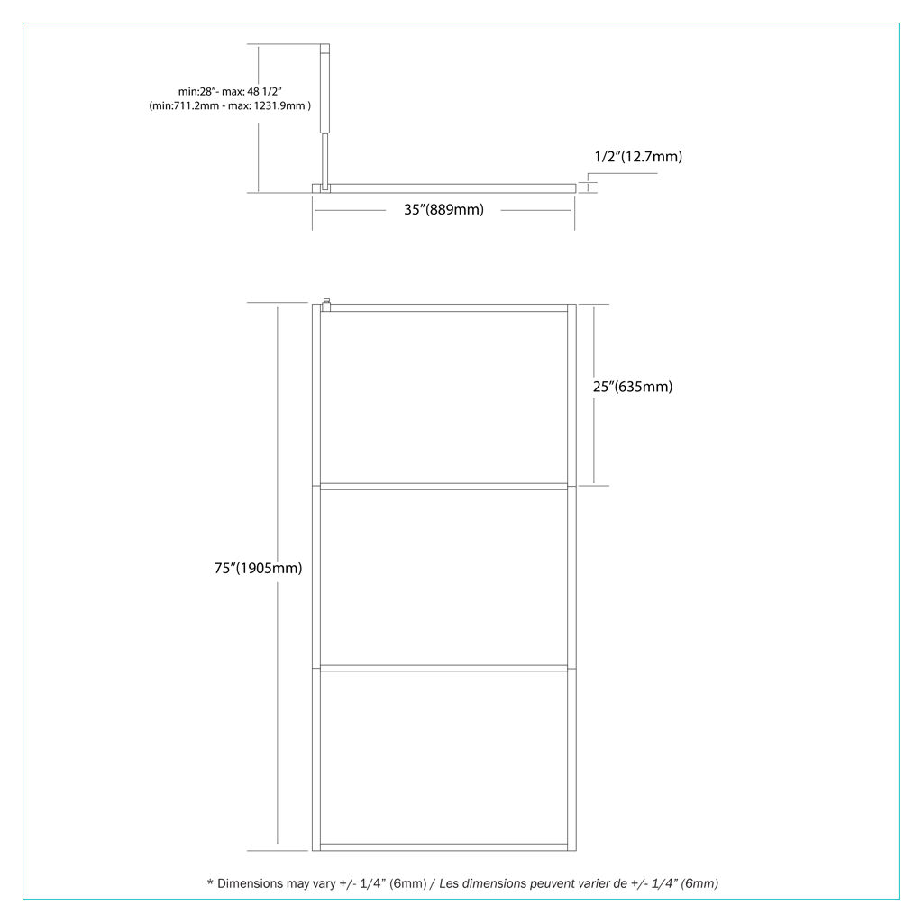 Douche à l'italienne Serenava 48 x 35 po Bain A&E SD17-36-BLK
