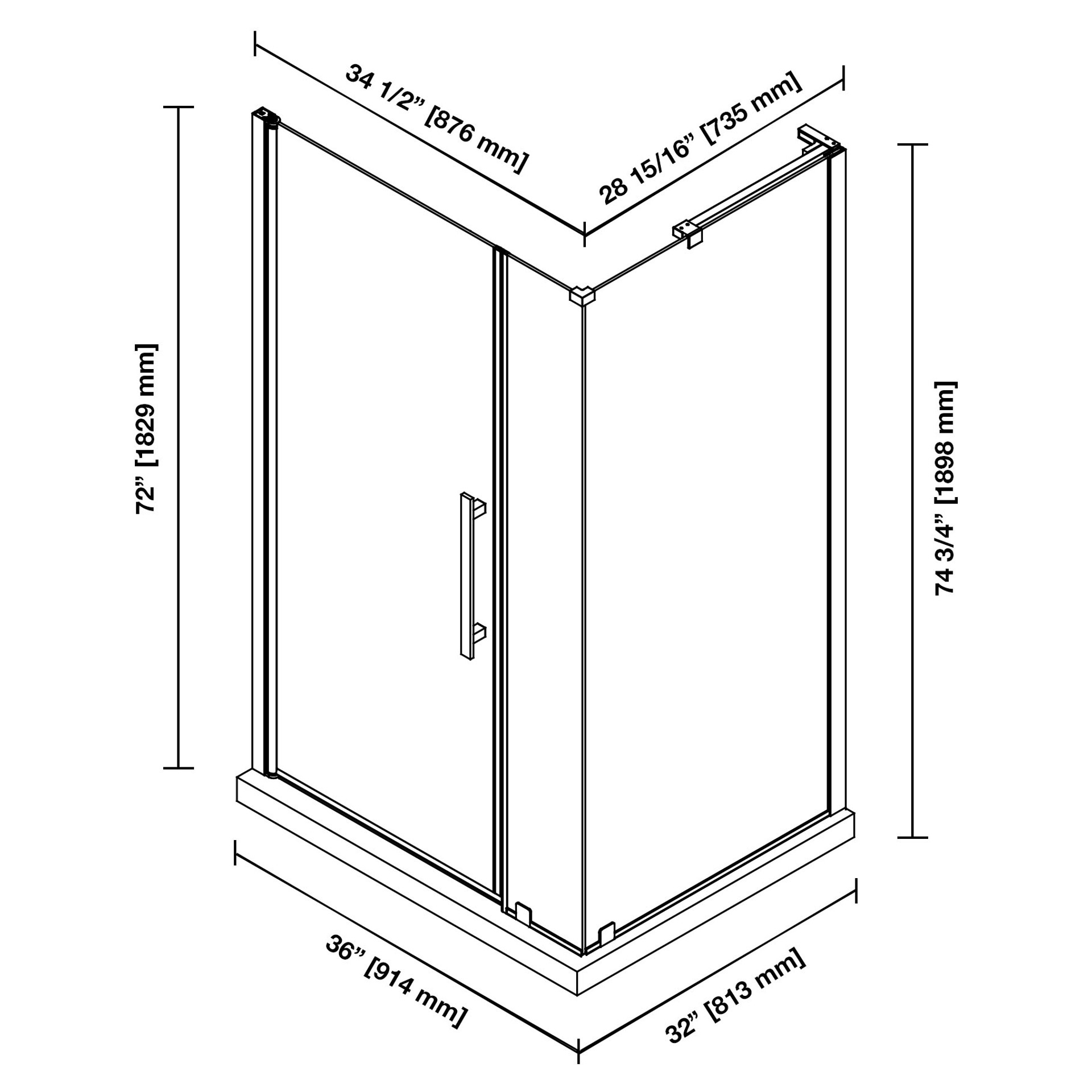 • Ensemble de douche pivotant pour alcôve : 36 po l. x 32 po P. x 74 po H