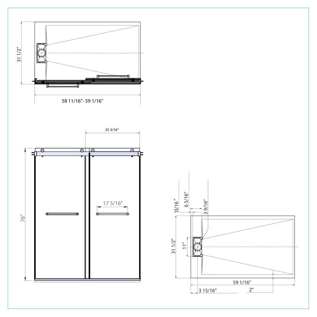 Ensemble de douche en alcôve Zep 60 x 32 po avec drain réversible Bain A&E SD12-60FU-BLK
