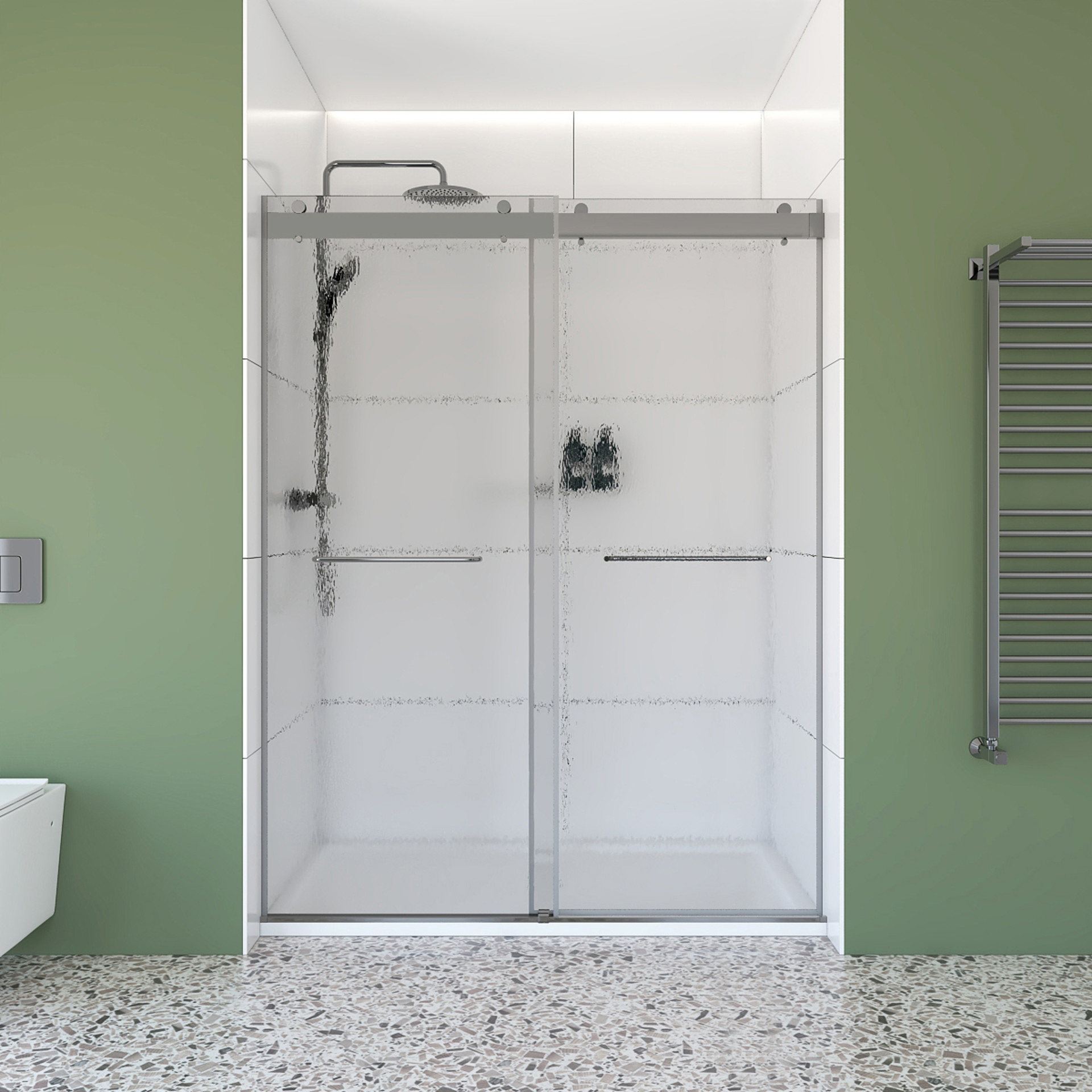 La base SMC durable vous offre une fondation solide, tandis que les portes coulissantes en verre pluie de 6 mm créent un aspect texturé et élégant.