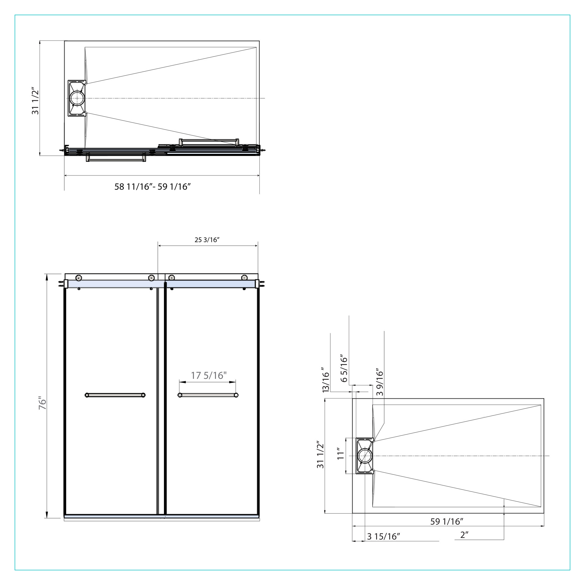 Ensemble de douche en alcôve Zep 60 x 32 po avec drain réversible Bain A&E SD12-60RD-CHR
