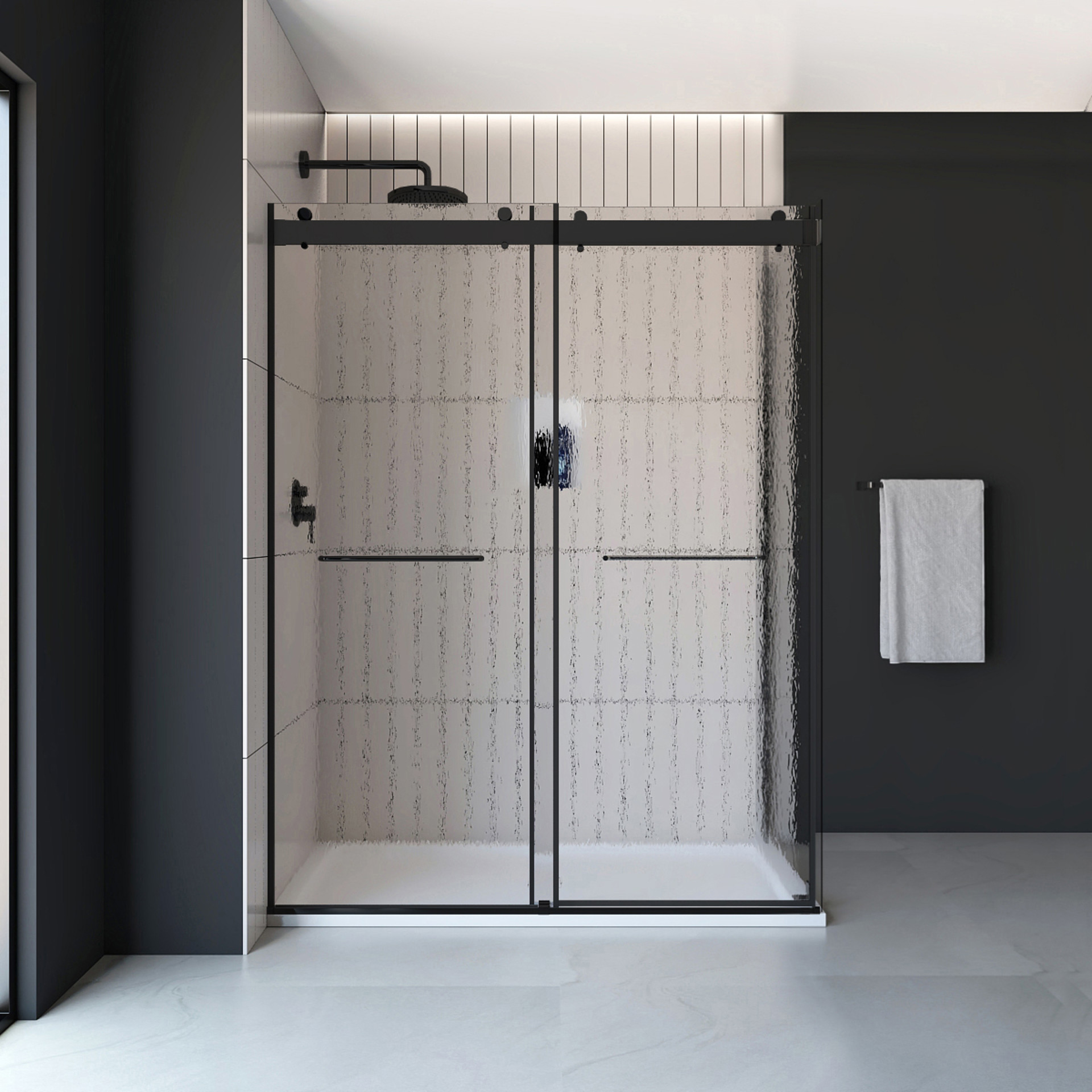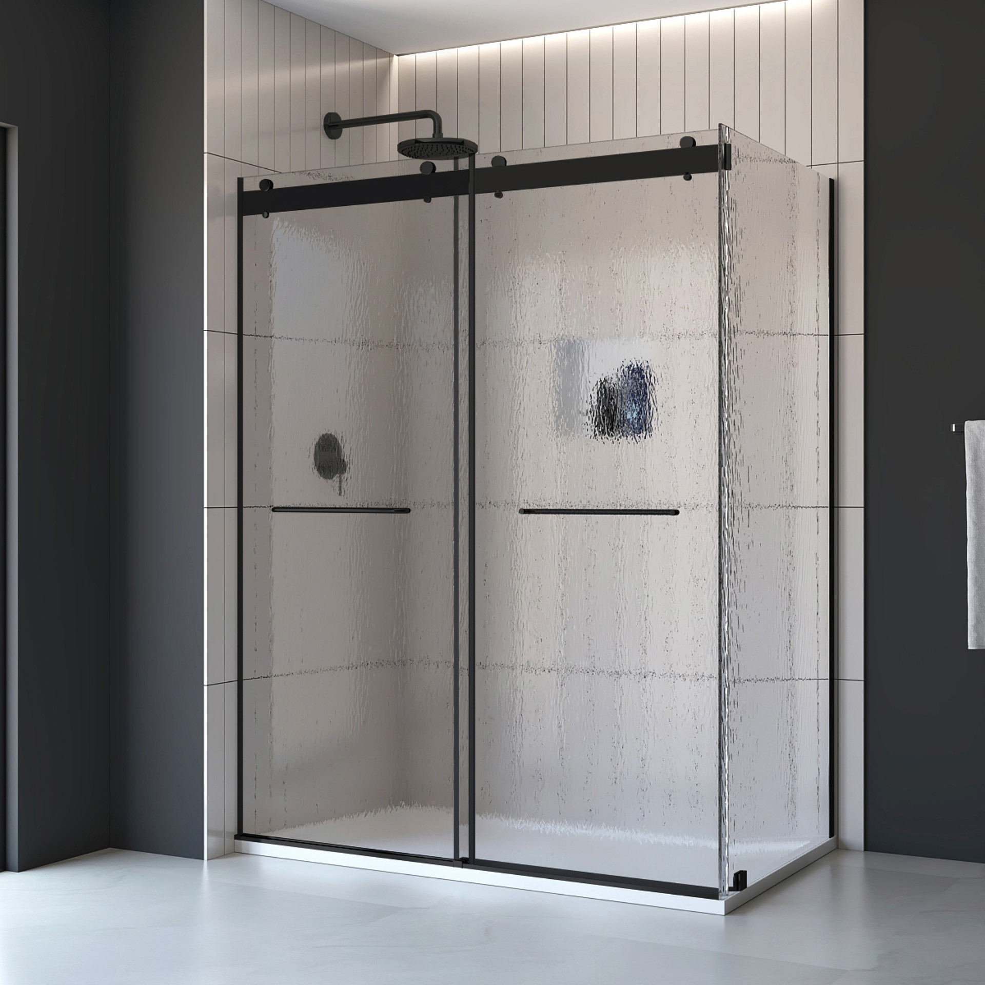Les poignées noires glissent facilement, ajoutant un accent contemporain qui transforme chaque douche en luxe discret.