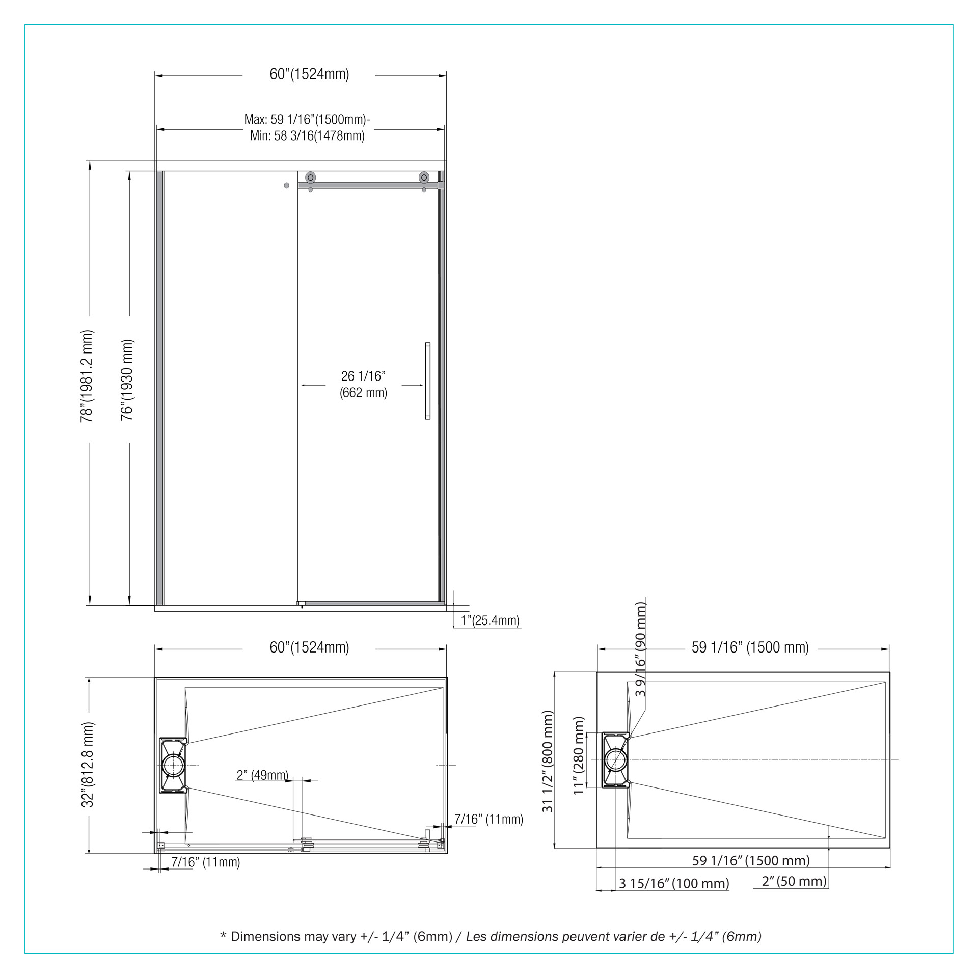• Dimension de la base : 60x32 po