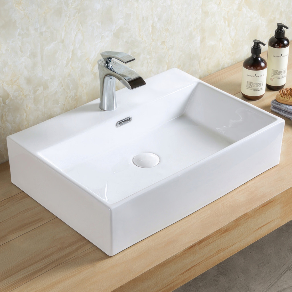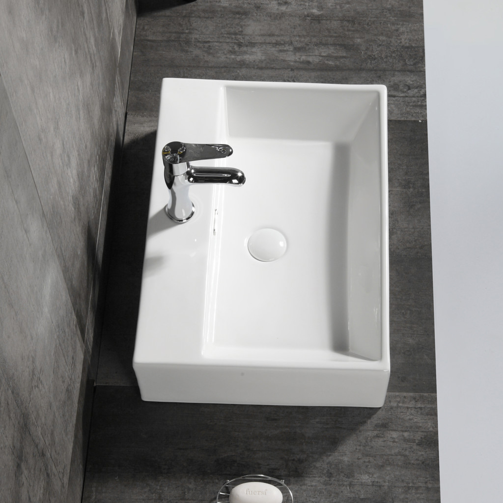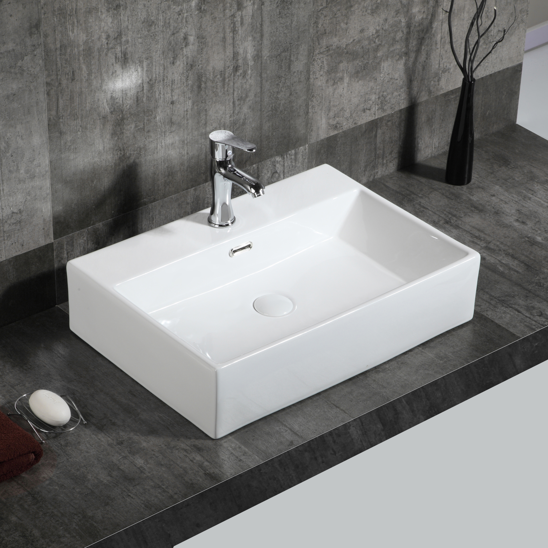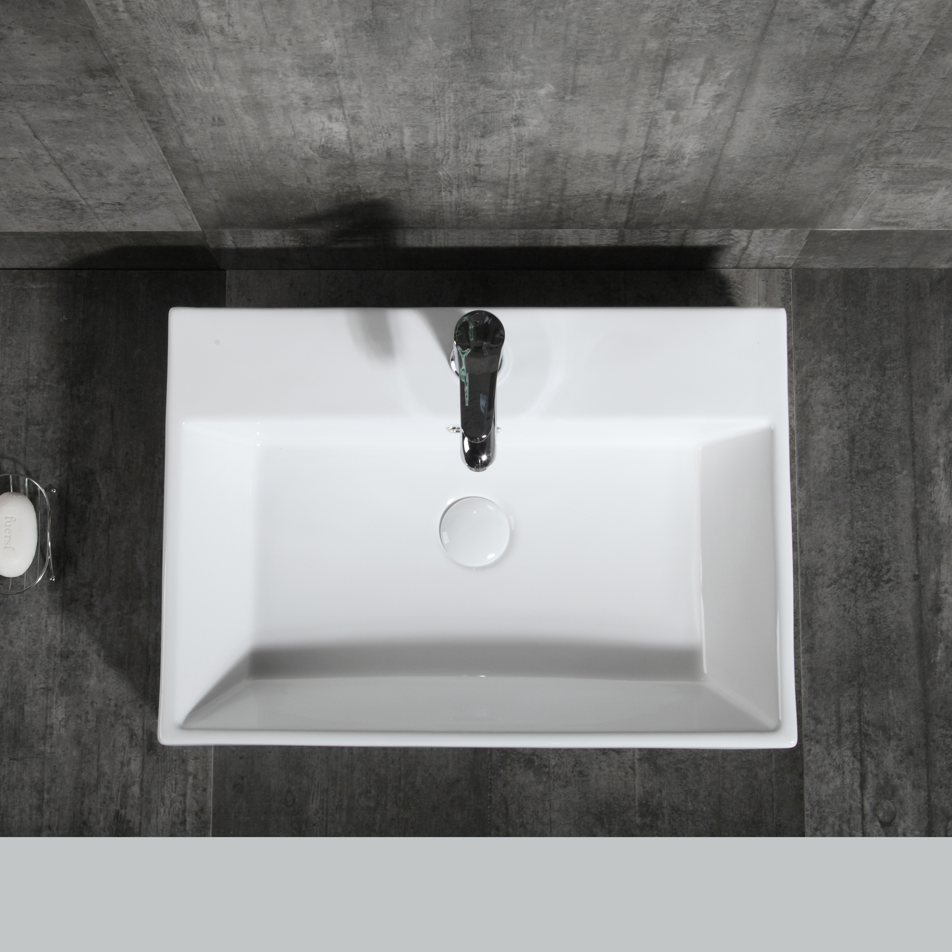 Lavabo vasque sur comptoir en céramique blanc lustré Brillion
