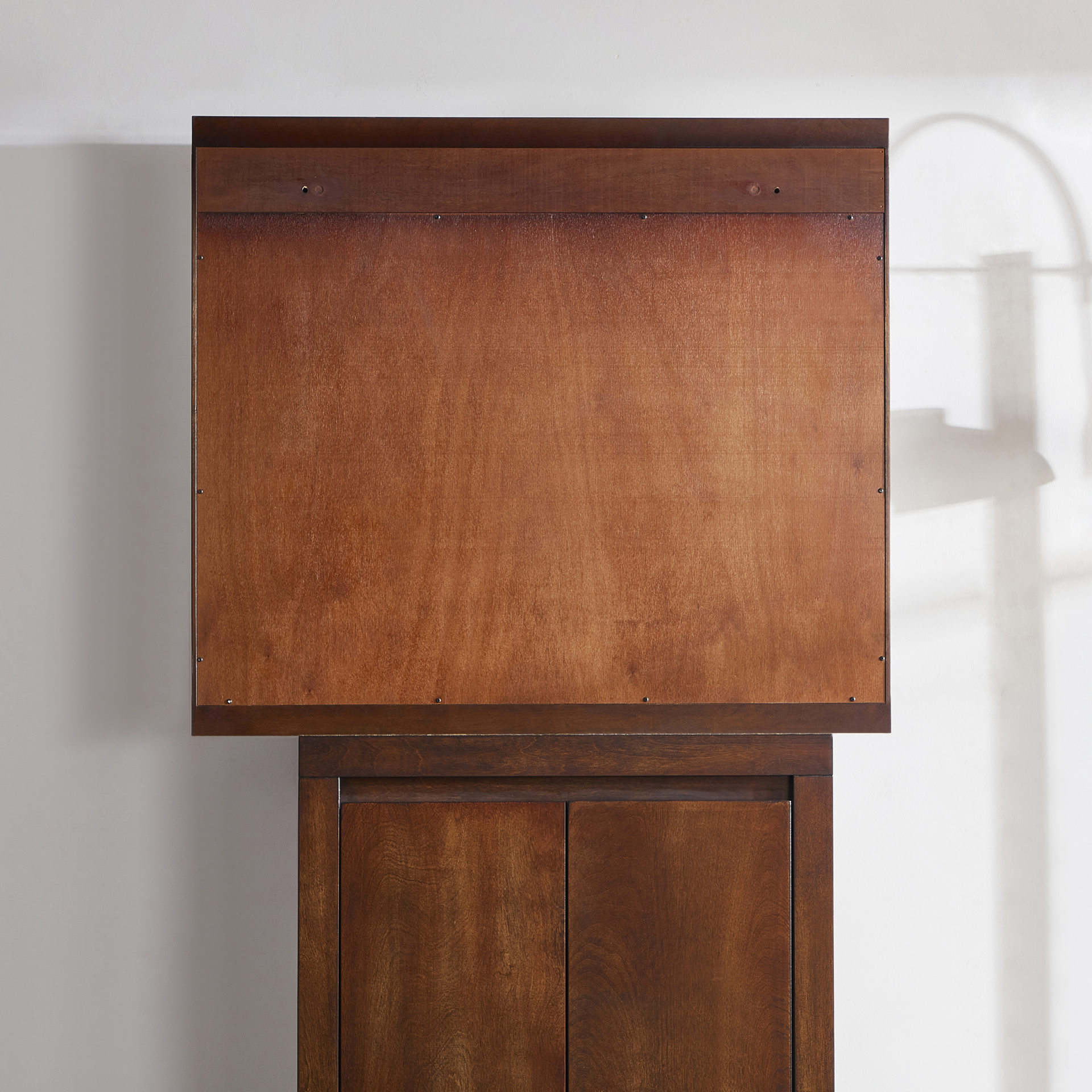 Complétez votre décor avec une armoire en placage de bois brun massif avec miroir. Livré avec des portes à fermeture douce.