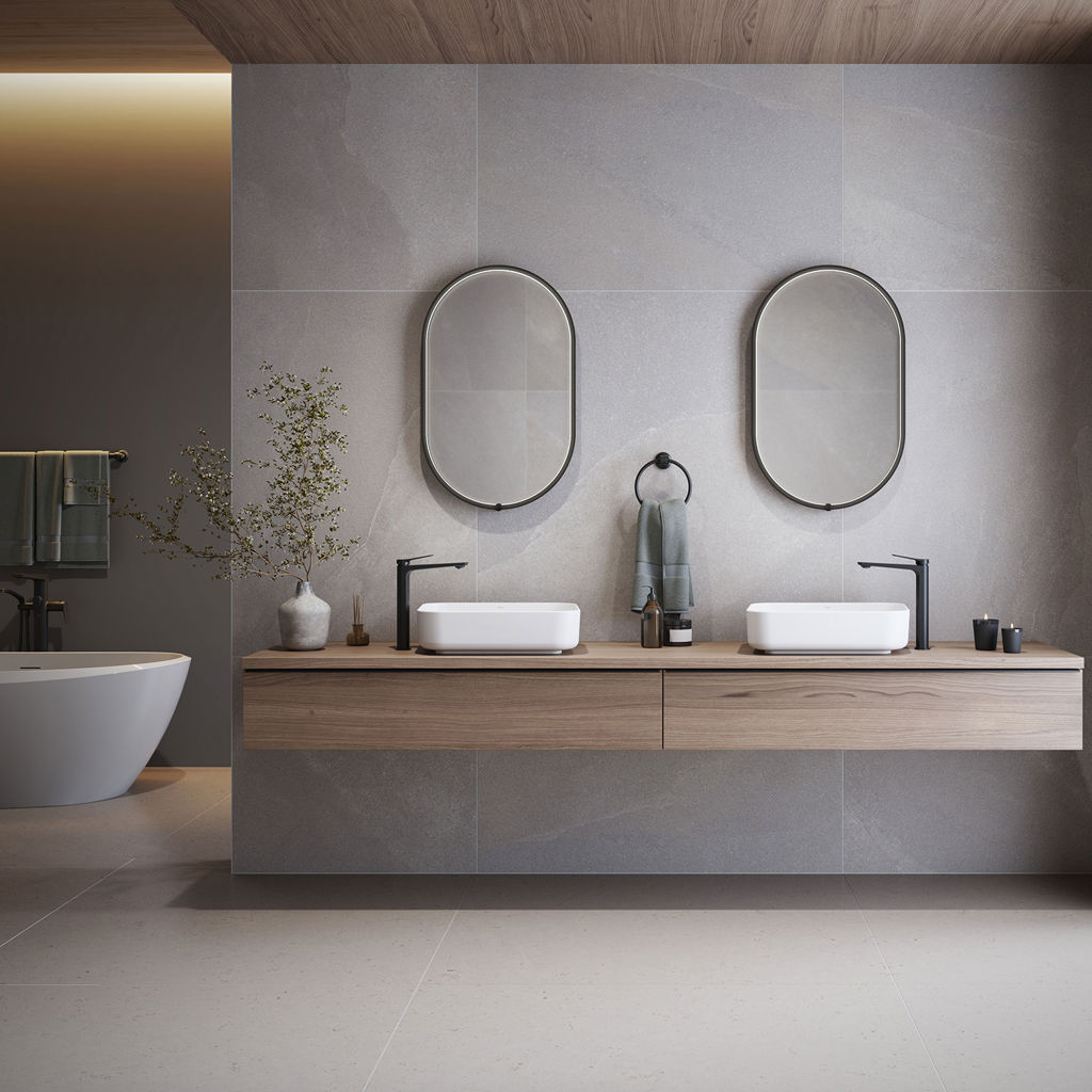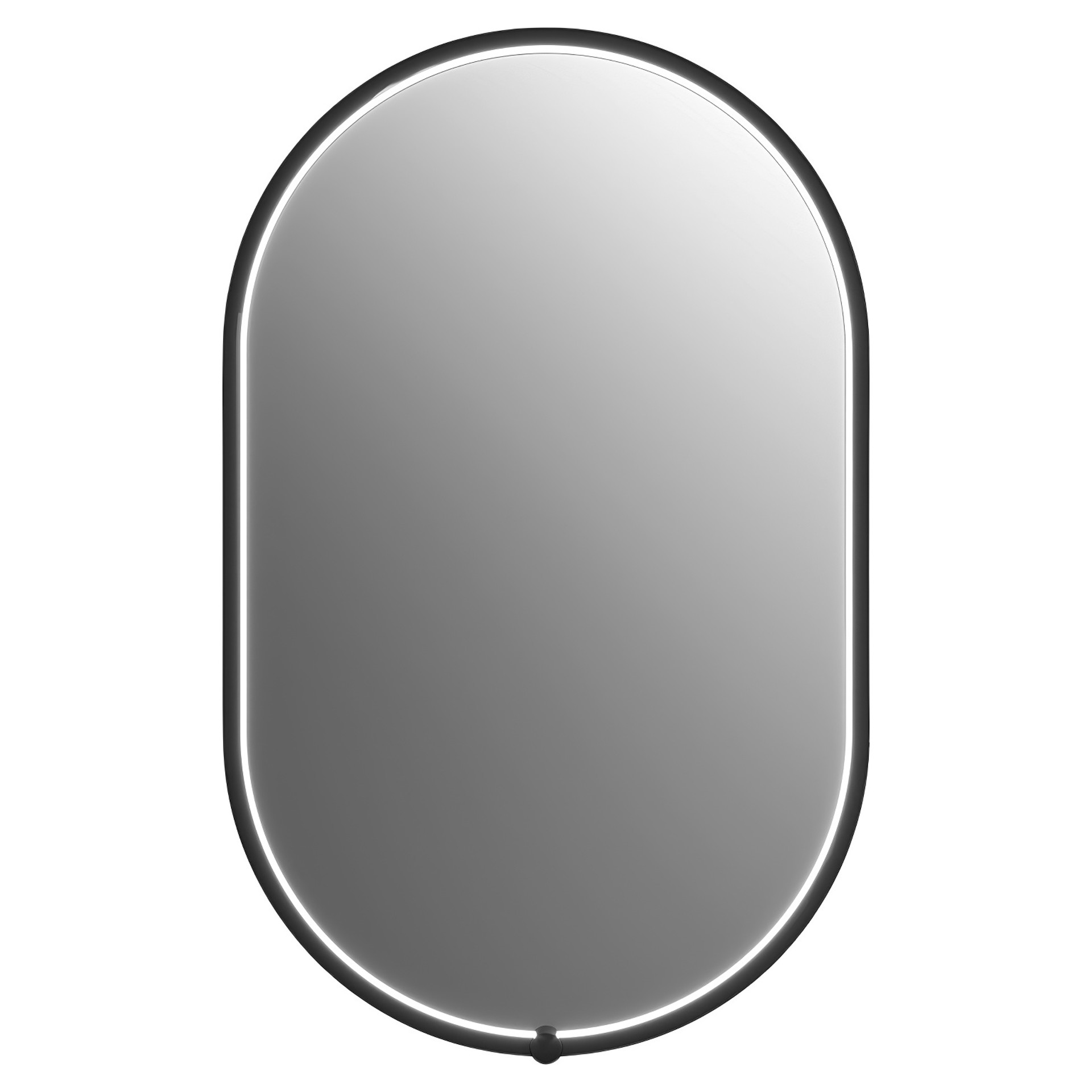 Le miroir Nox ovale noir à éclairage DEL dissimulé avec interrupteur tactile intégré au cadre allie design raffiné et fonctionnalité.