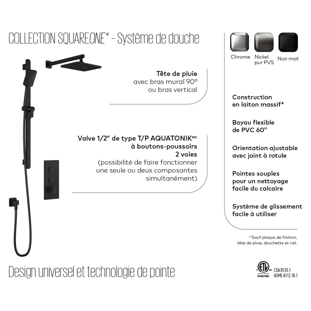 SquareOne système de douche AQUATONIK à boutons-poussoirs avec bras vertical