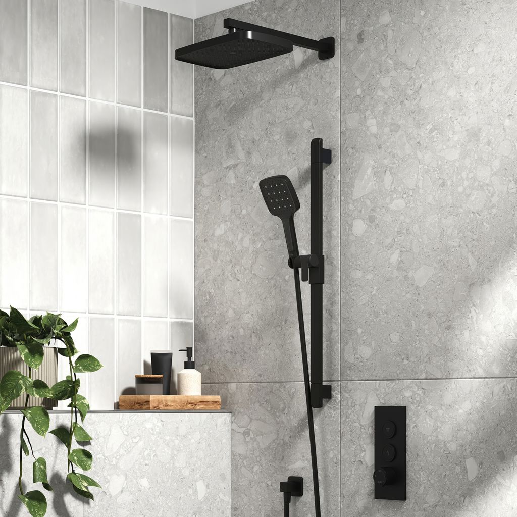Système de douche Kareo TB2 Plus à boutons-poussoirs avec bras mural - Noir mat