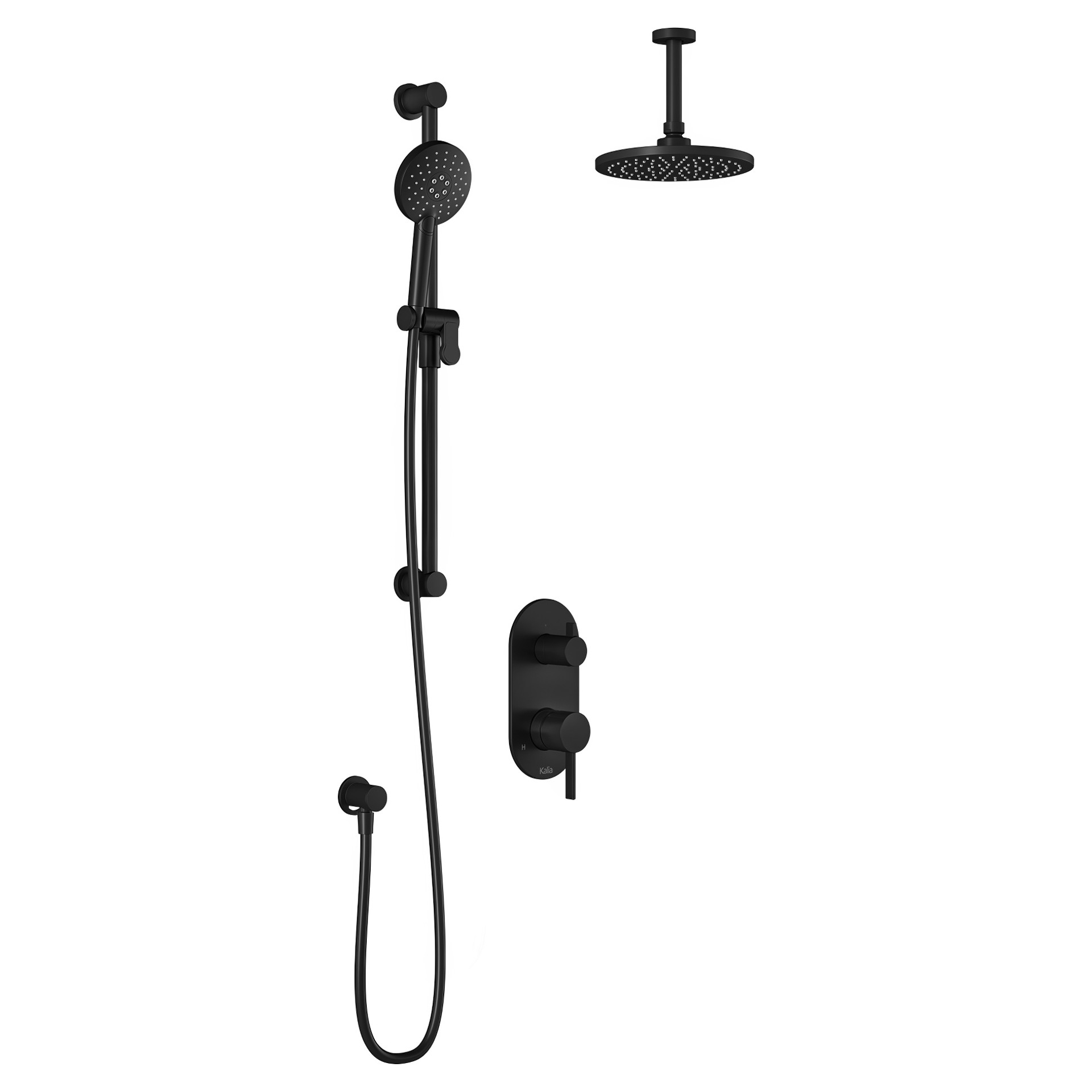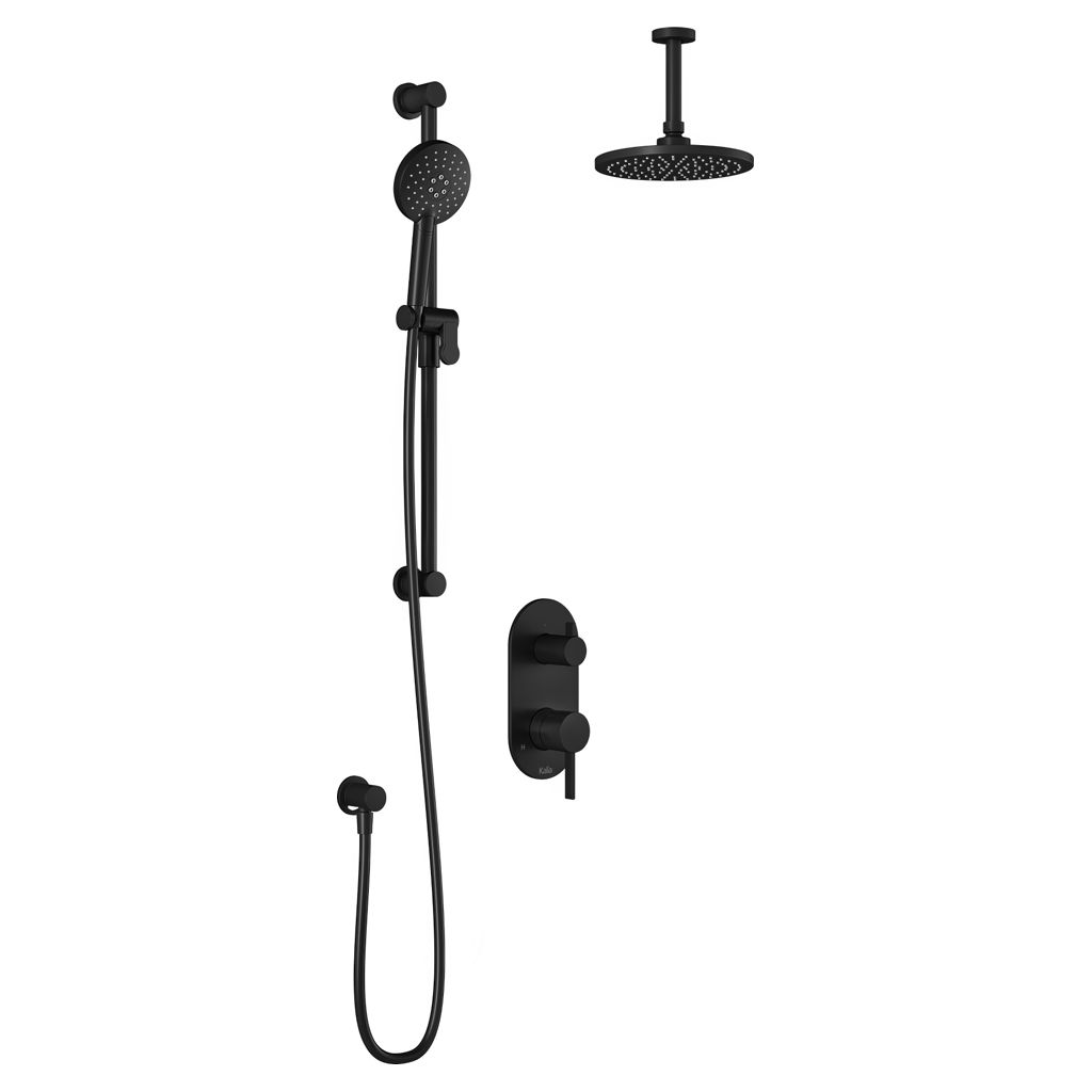 Système de douche Roundone PB4 à pressions équilibrée avec sélecteur 2 voies et bras vertical-Noir Kalia BF2175-160-001