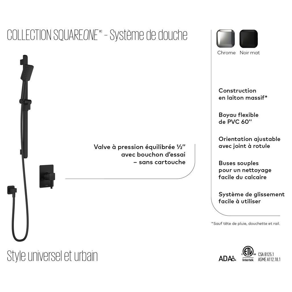 Style universel et urbain, la collection SQUAREONE est maintenant offerte en pression équilibrée.