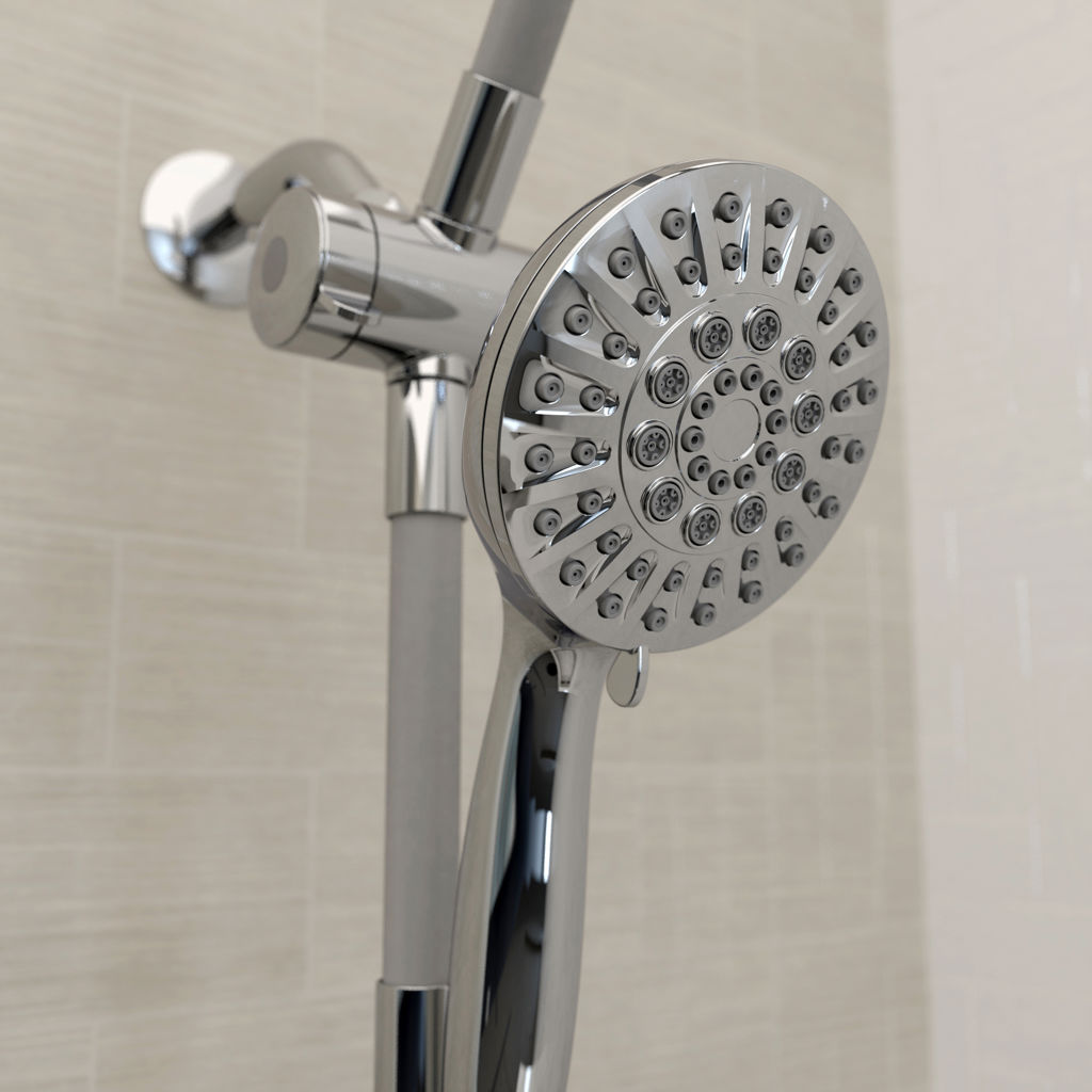 • La pomme de douche pivotante propose 5 types de jets avec un débit de 1,75 gpm (6,6 L/min)
