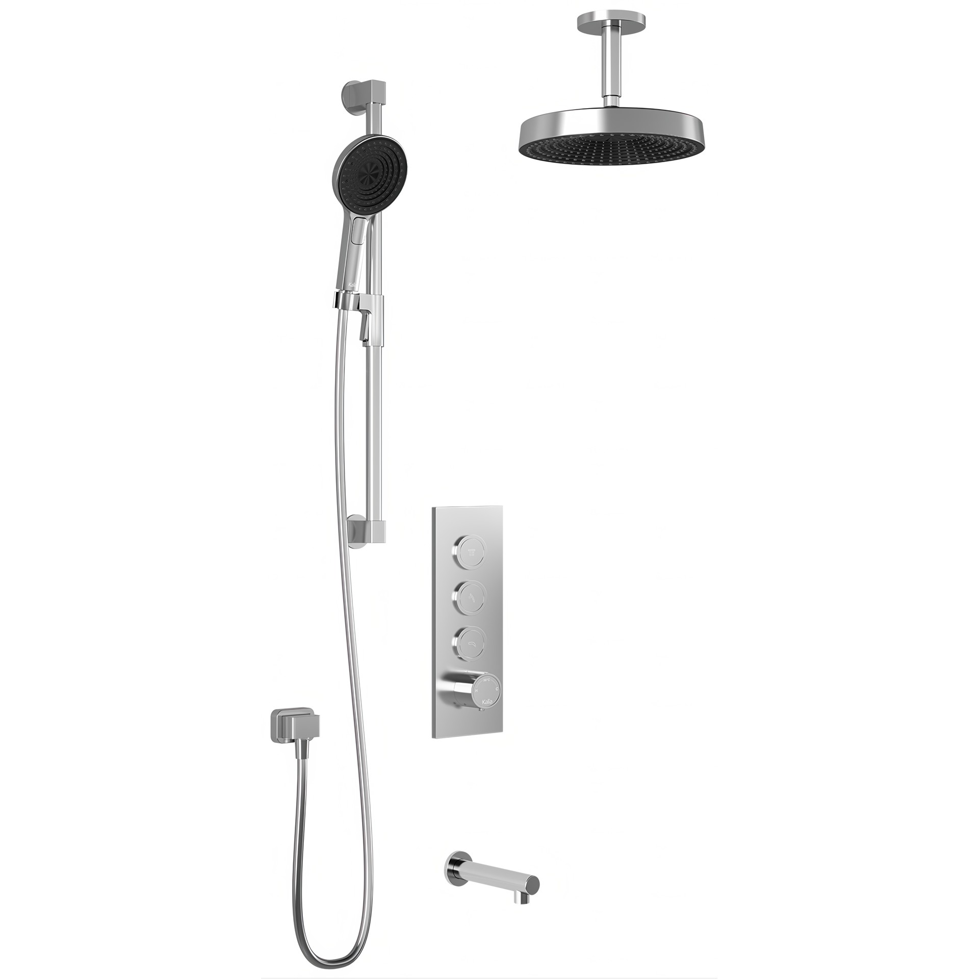 Ensemble de douche RoundOne TB3 avec valve à boutons-poussoirs et bec de bain PREMIA Kalia BF2066-110-201