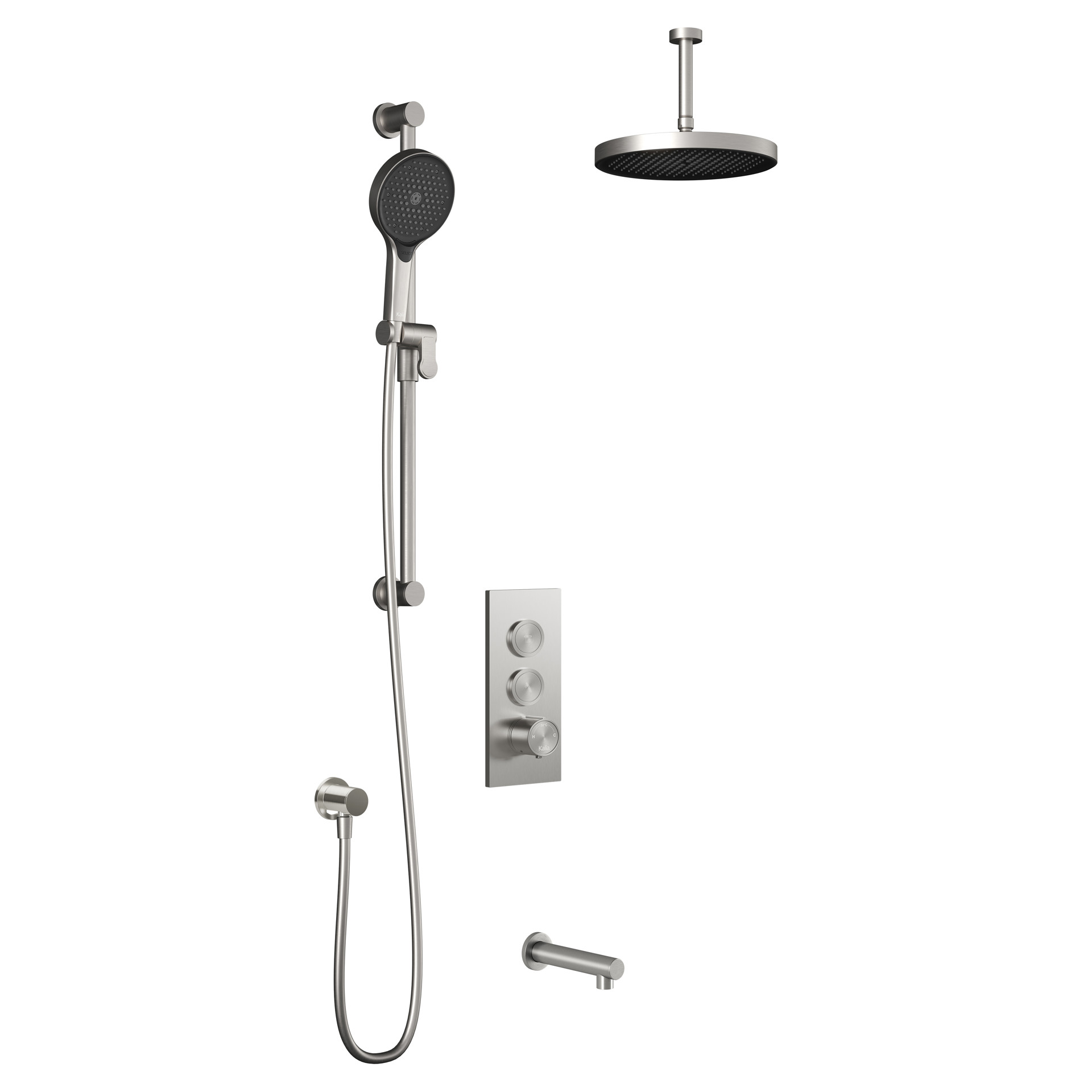 Ensemble de douche RoundOne TB3 avec valve à boutons-poussoirs et bec de bain PLUS Kalia BF2066-125-101