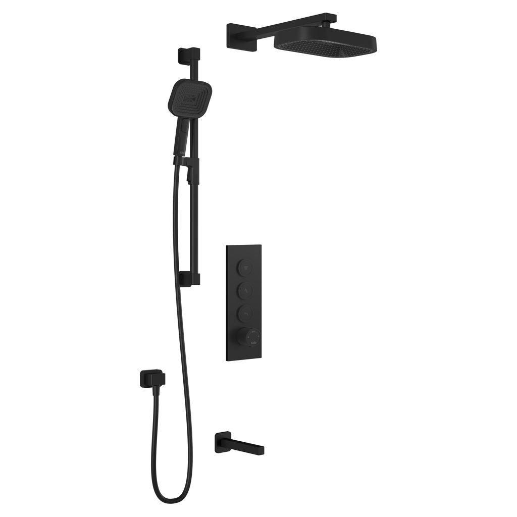 Ensemble de douche SquareOne TB3 avec valve à boutons-poussoirs et bec de bain PREMIA