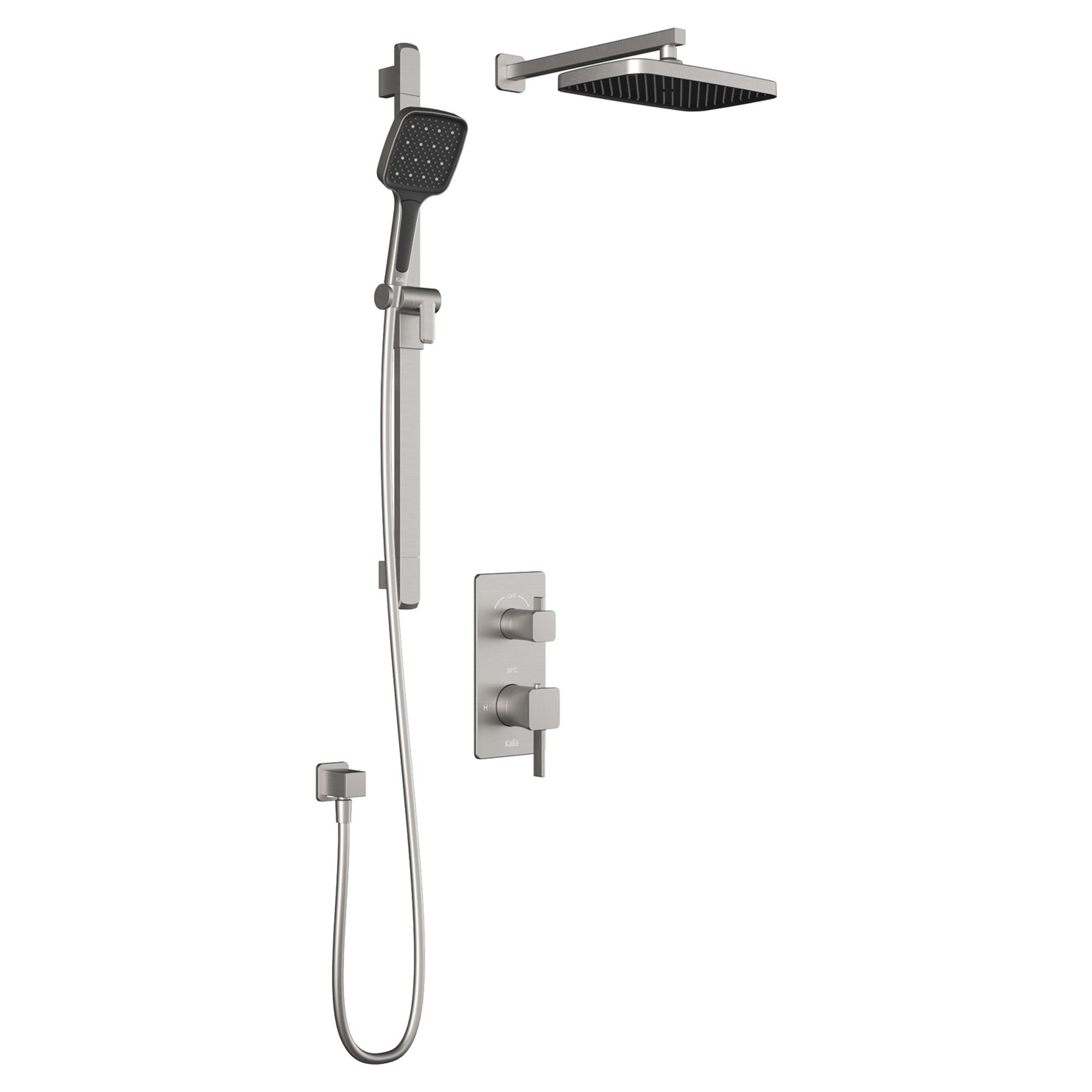 Ensemble de douche SquareOne PLUS TD2 avec bras mural - nickel pur PVS Kalia BF1650-125-100