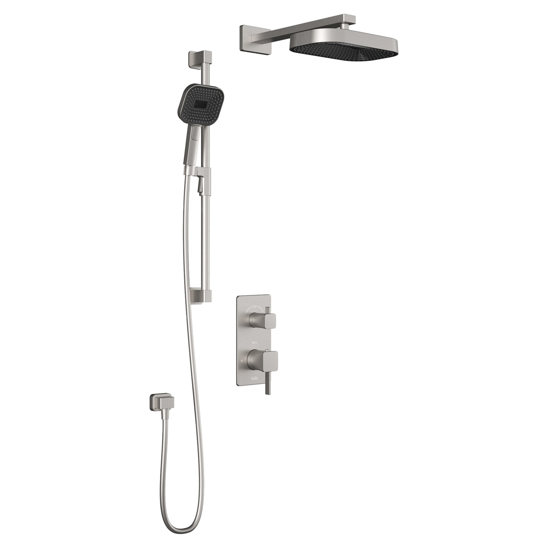 Ensemble de douche SquareOne PREMIA TD2 avec bras de plafond - nickel pur PVS Kalia BF1650-125-200