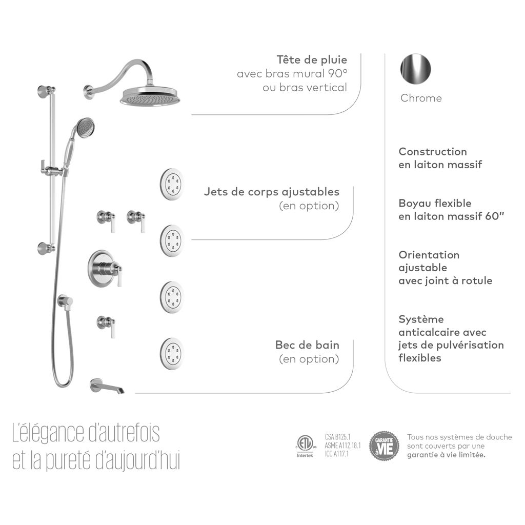Système de douche thermostatique Rustik avec valve de type T/P AQUATONIK™, bec de bain et bras mural - Chrome
