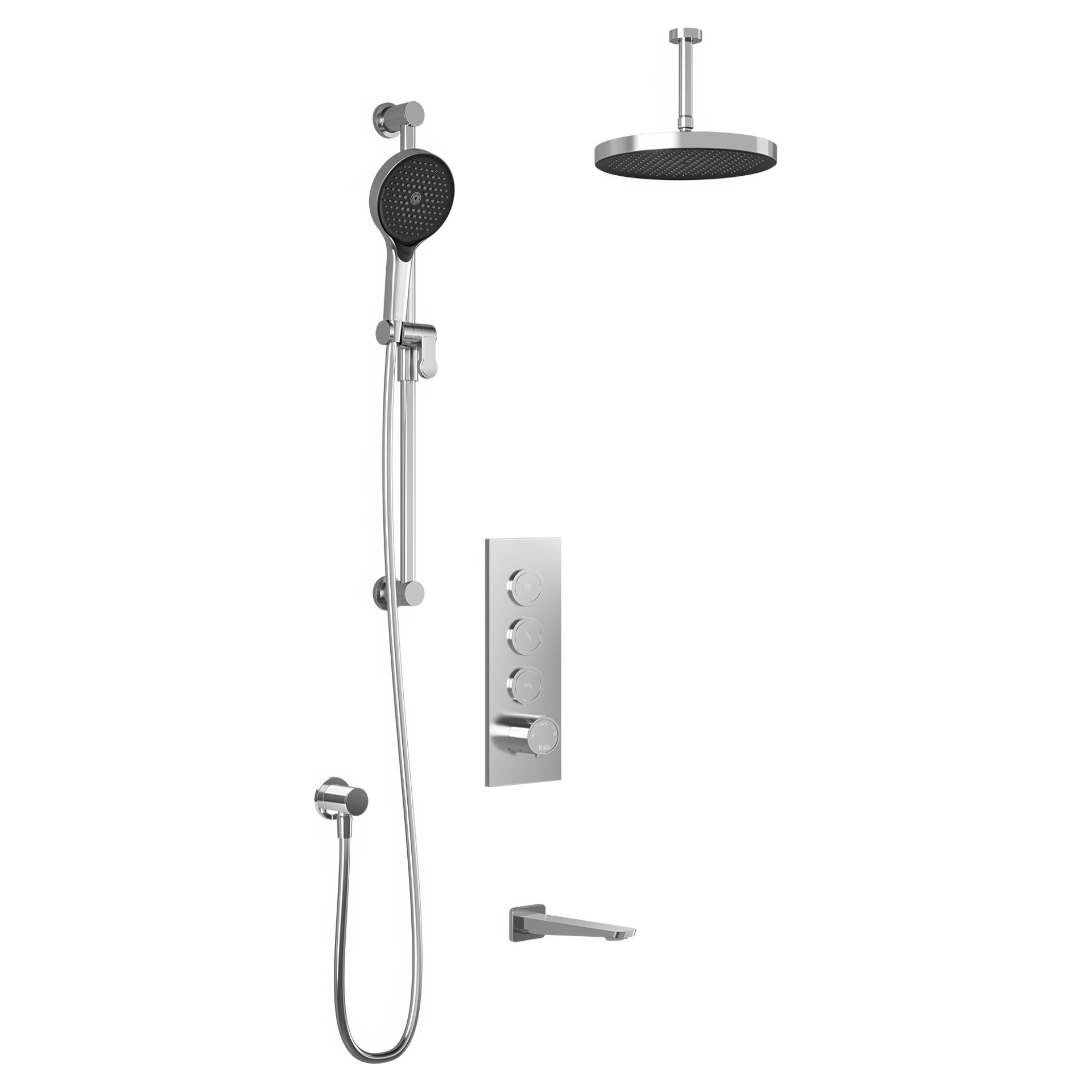 Système de douche Moroka TB3 Plus T/P Aquatonik à boutons-poussoirs avec bras vertical - Chrome Kalia BF2097-110-101