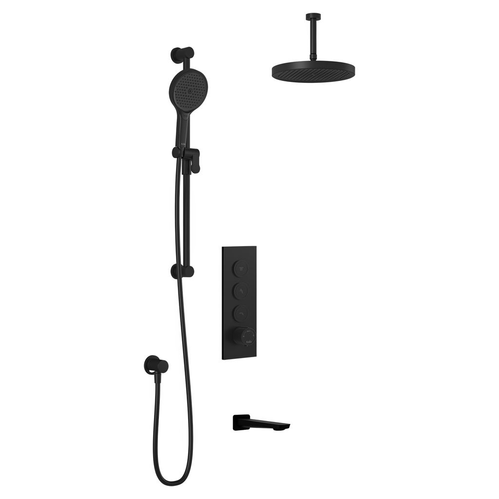 Système de douche Moroka TB3 Plus T/P Aquatonik à boutons-poussoirs avec bras vertical - Noir mat Kalia BF2097-160-101