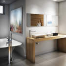 Alliance de formes carrées et rondes, la collection Grafik se décline en lignes audacieuses qui s'envolent au-dessus du lavabo ou de la baignoire. Cette collection a du style qui vous charmera des années durant.
