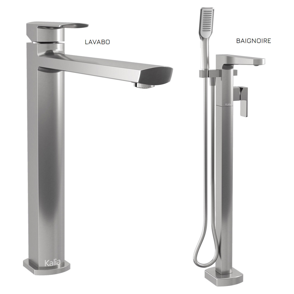Grafik : Ensemble de robinets de lavabo et de bain autoportant- Nickel pur PVS Kalia *BF1291-125/BF1293-125
