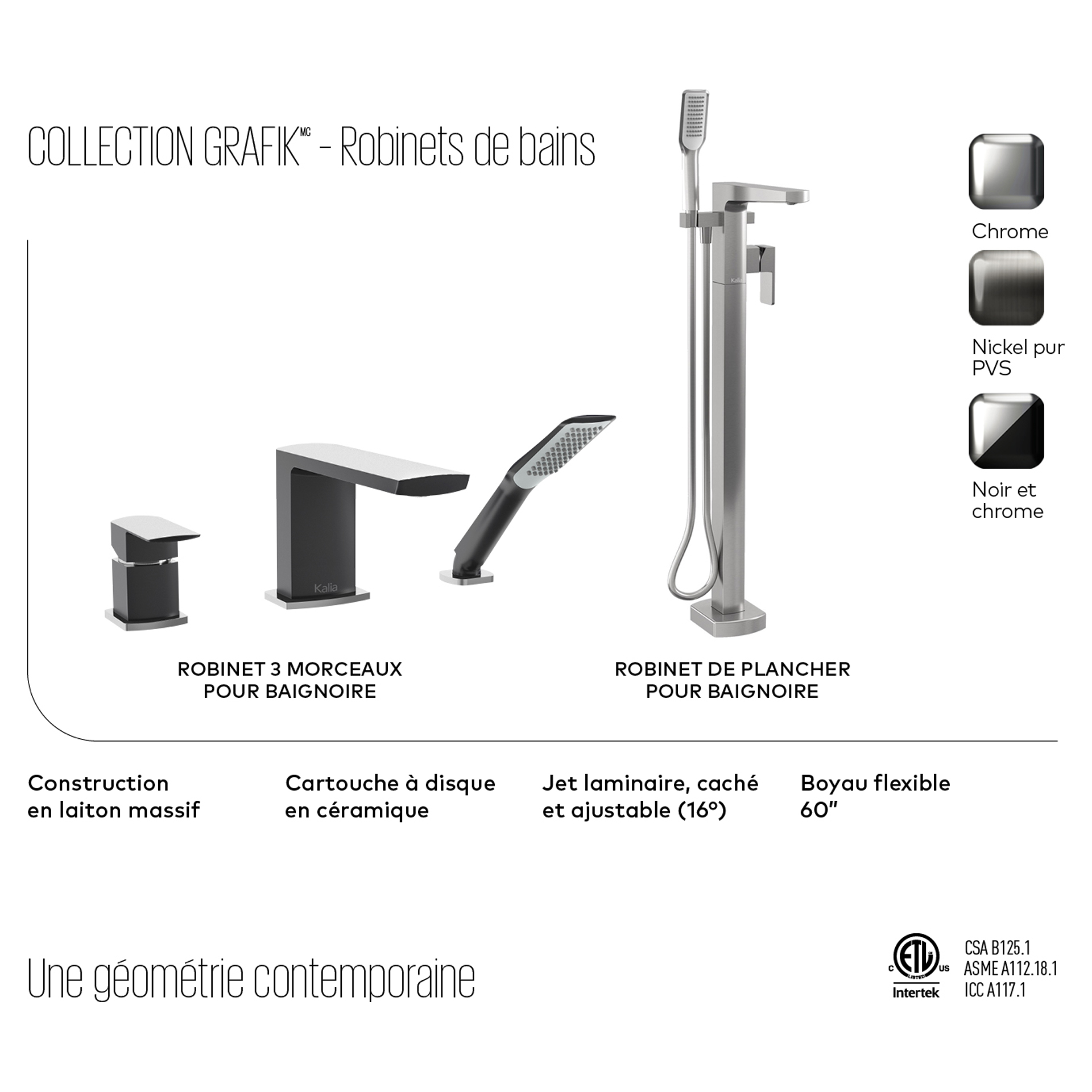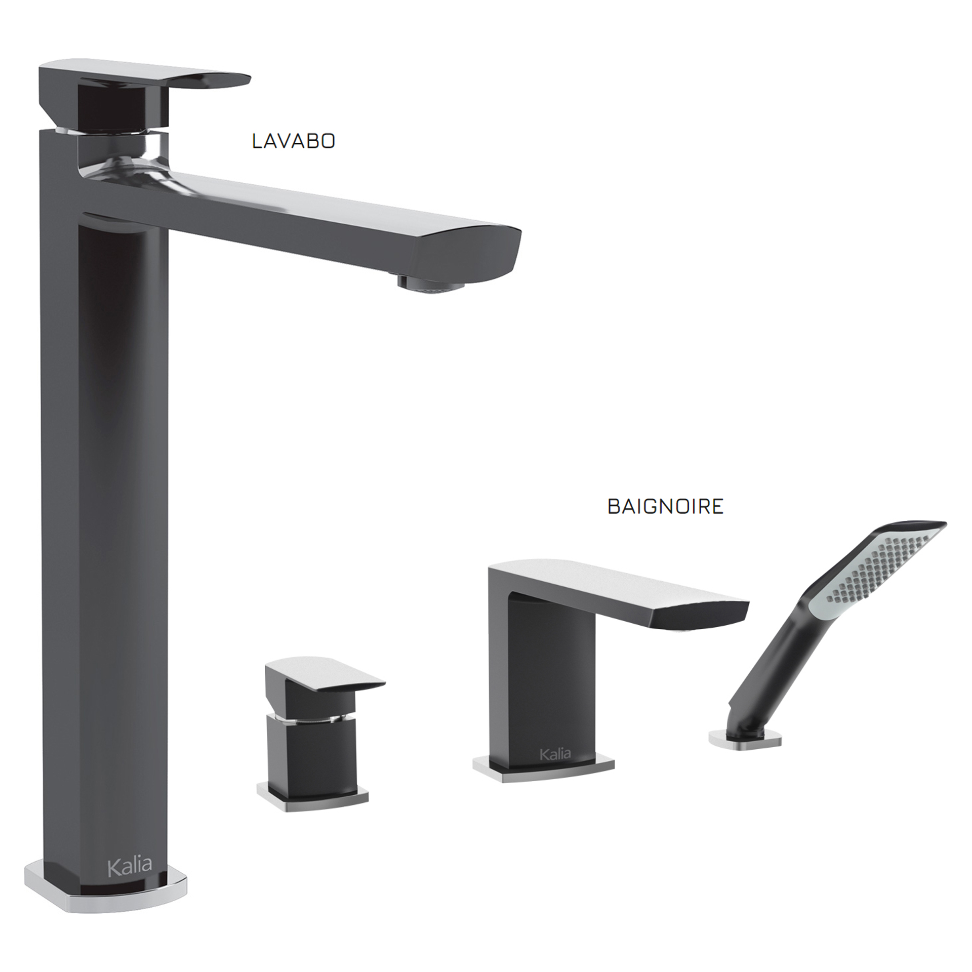 Grafik : Ensemble de robinets de lavabo et de baignoire - Noir et chrome Kalia *BF1291-150/BF1292-150