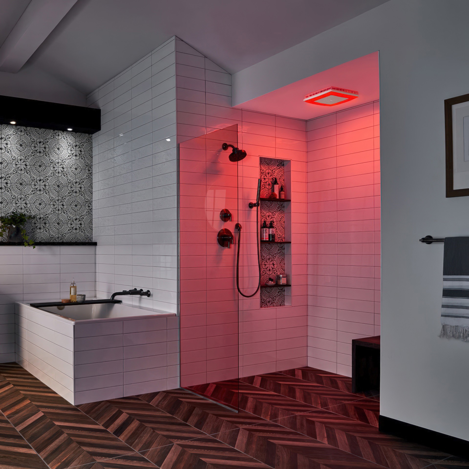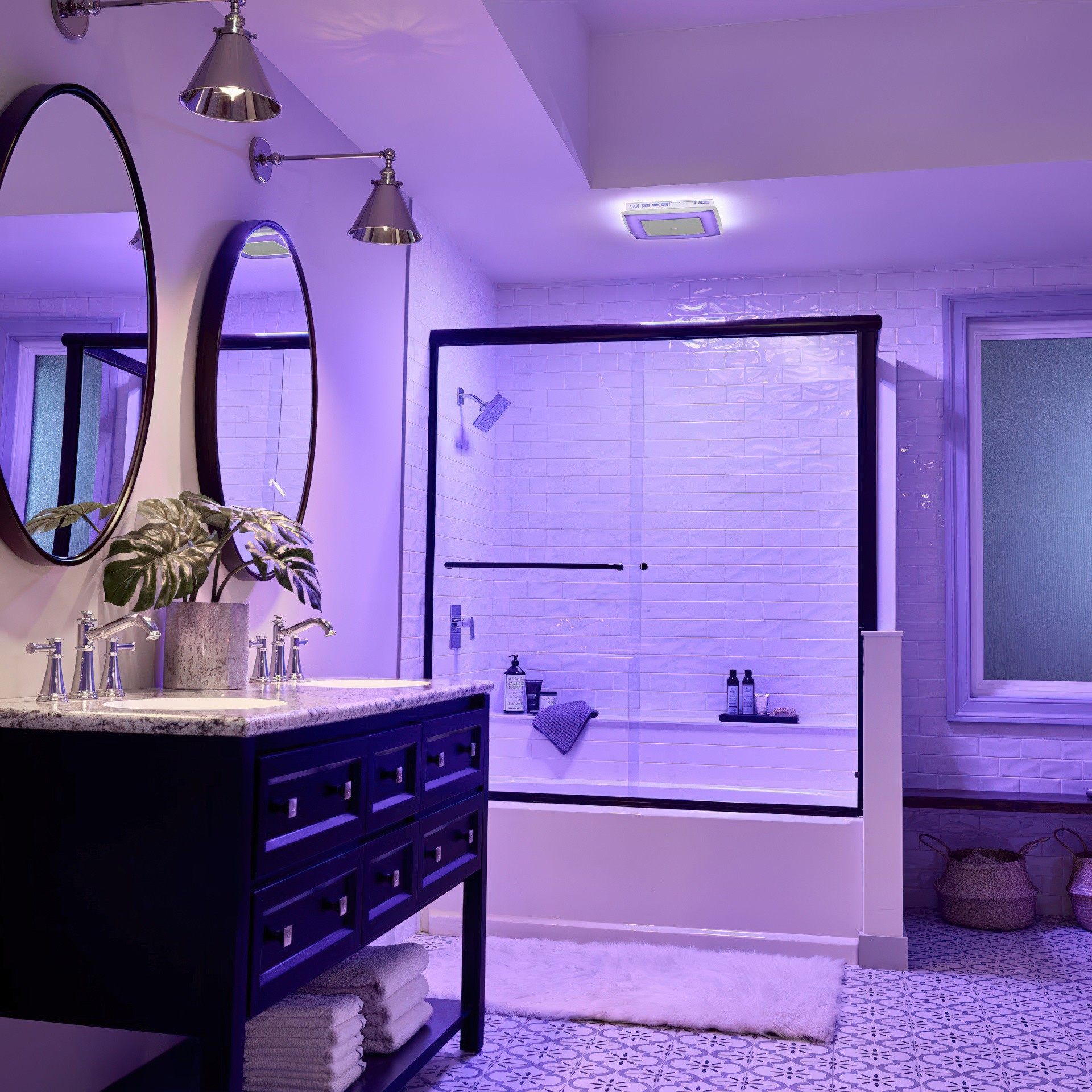 Que vous commenciez la journée en tant que star d’un concert ou que vous terminiez la journée avec un bain relaxant dans la baignoire, le haut-parleur Bluetooth® Sensonic ™ de Broan-NuTone avec lumière changeant de couleur offre un excellent son avec des couleurs vives assorties.