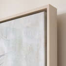 Toile embellie à la main et son cadre blanc.